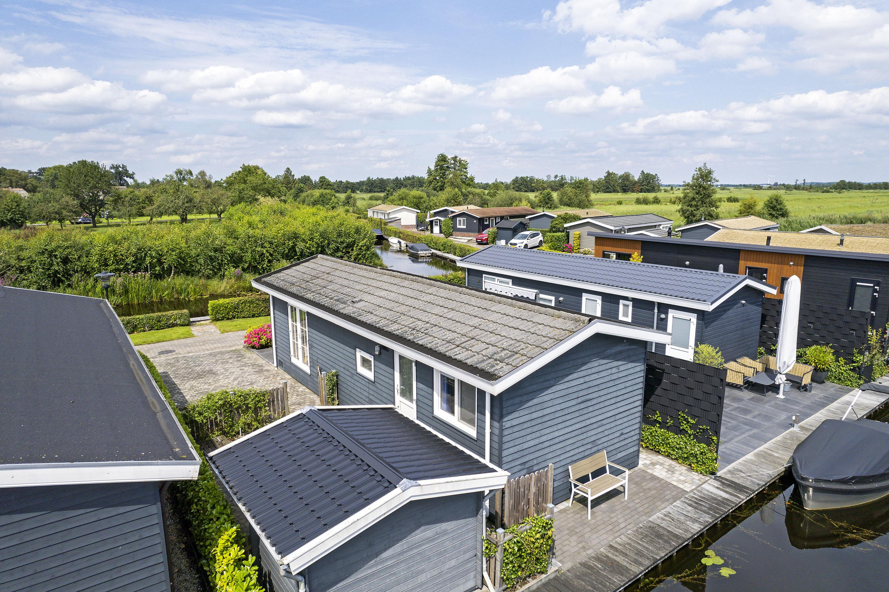 Dit chalet in Giethoorn biedt een ideale gelegenheid om aan het water te wonen en recreëren. Gelegen op een eigen perceel van 172 m² met een eigen aanlegsteiger van 9 meter, geeft het jou directe toegang tot het rustige vaarwater. Het chalet heeft een woonoppervlakte van ongeveer 47 m², met een knusse woonkamer die uitkijkt op het water en openslaande tuindeuren naar een zonnig terras. De praktische keuken is voorzien van moderne apparatuur. Er zijn twee slaapkamers, waaronder één met een stapelbed en een royale slaapkamer met veel bergruimte. Dit chalet is uitgerust met cv-verwarming en airco en beschikt verder over een tuinschuur voor extra opslag. Vraagprijs is € 180.000,-, zonder verhuurverplichting, en het ligt op loopafstand van het sfeervolle dorp Giethoorn en biedt volop recreatiemogelijkheden.