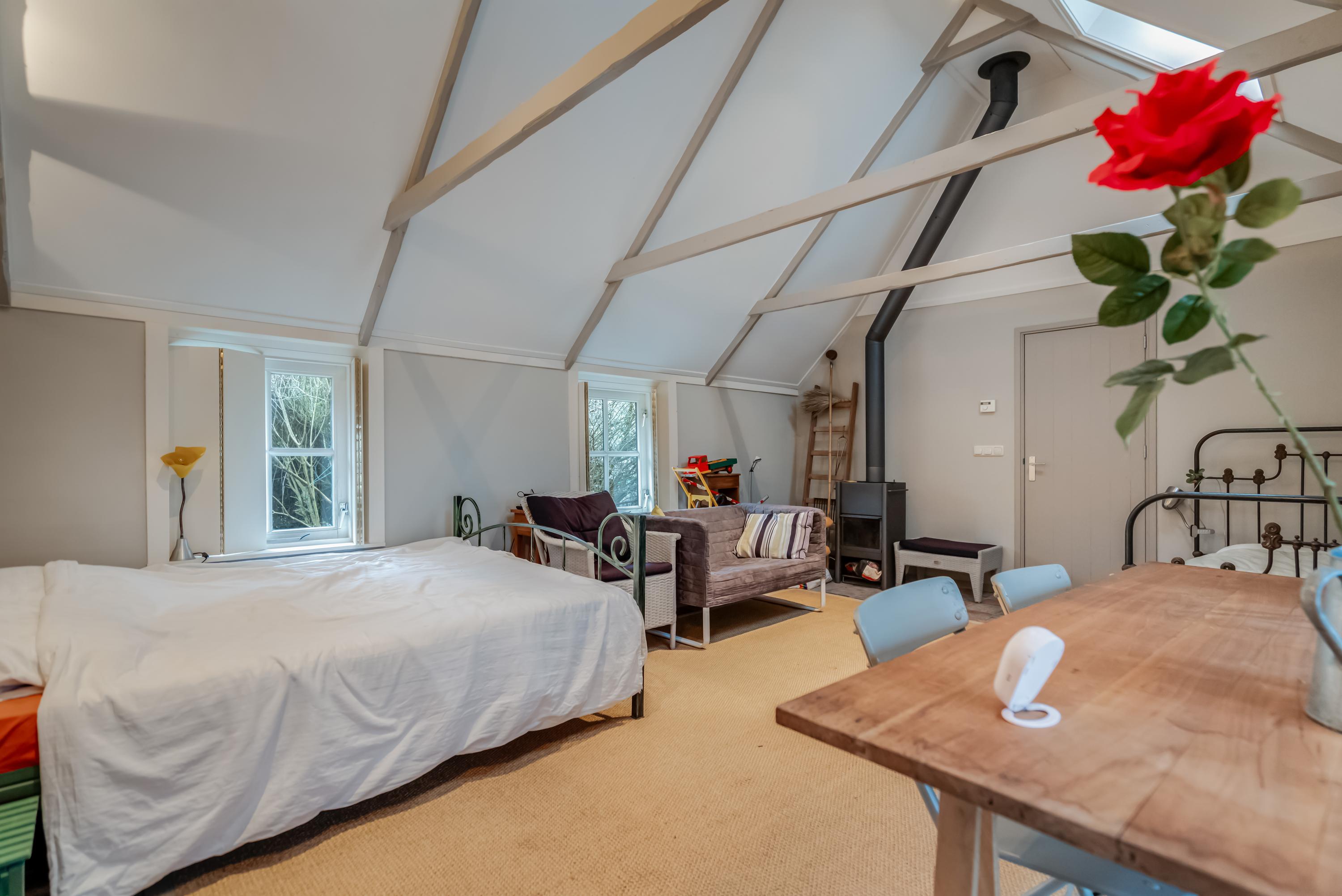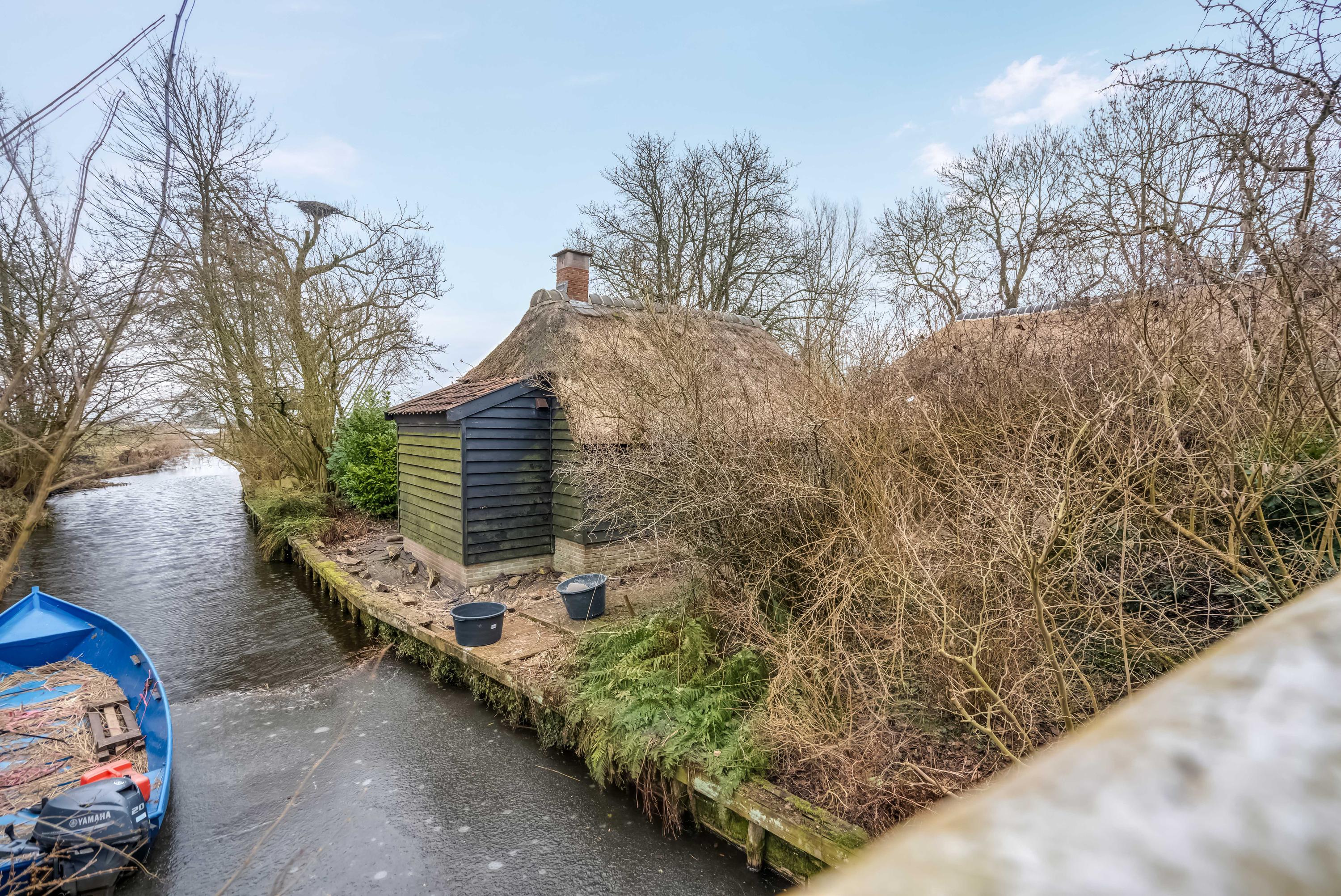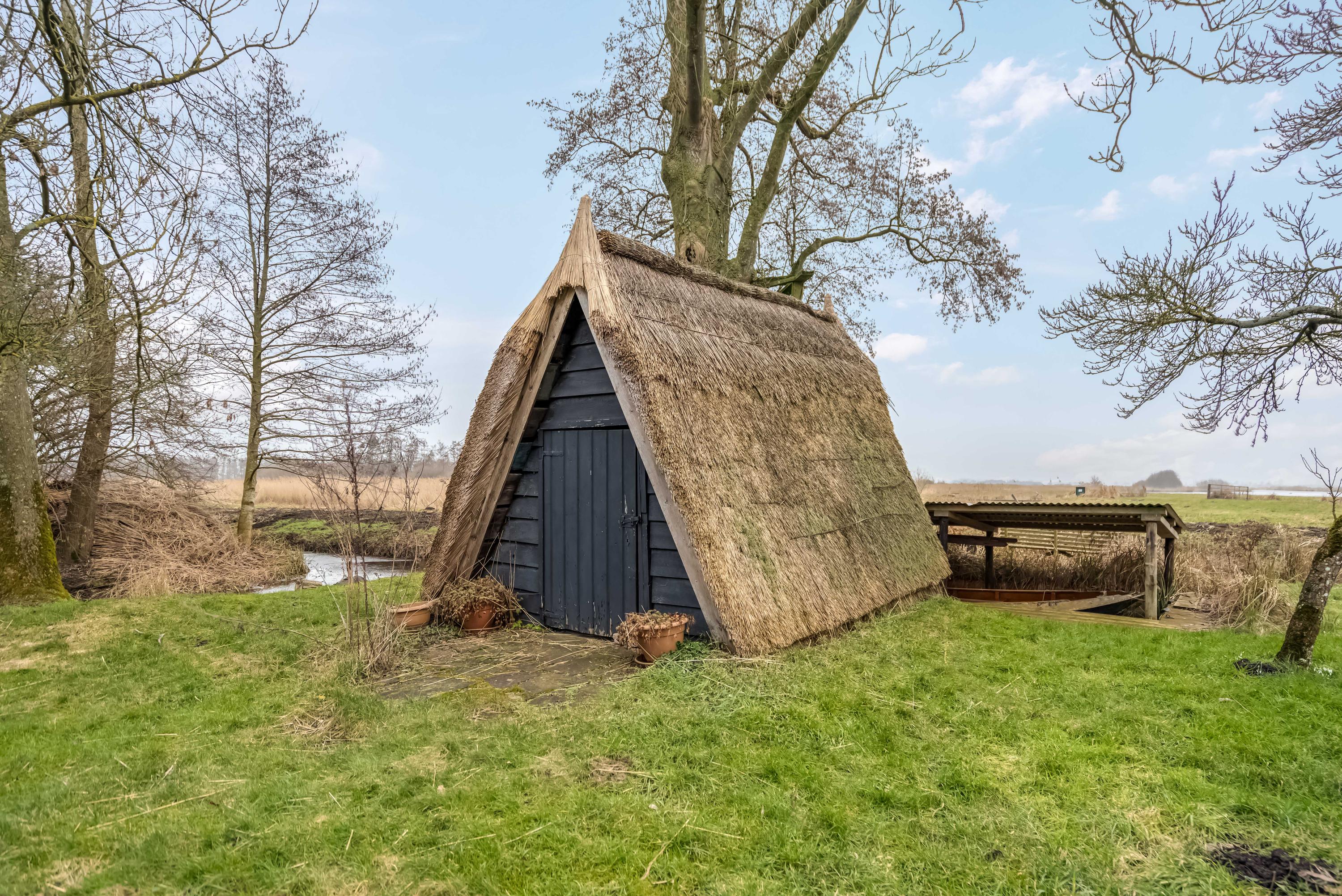 Deze vrijstaande rietgedekte woonboerderij met gastenverblijf ligt op een perceel van 1.628 m² aan de Kloostergracht, met toegang tot open vaarwater. Omringd door natuur en rust, straalt het de privacy uit die u zoekt. De boerderij, gebouwd in 1906, biedt een ruime woonkamer van ca. 43 m², een eenvoudige open keuken, een badkamer met ligbad, en vier slaapkamers over twee verdiepingen. Het gastenverblijf heeft een aparte living/slaapkamer van ca. 25 m² en een eigen badkamer. In de achtertuin van ca. 30 meter diep vindt u een groot gazon, een botenhuis en meer, allemaal omgeven door groen en met prachtige uitzichten. Deze unieke woning is alleen te voet bereikbaar, maar nabij voorzieningen zoals een supermarkt en restaurants.