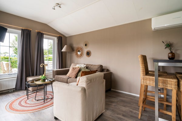 Dit volledig gemeubileerde chalet ligt in het kleinschalige park 'Kroondomein Giethoorn', direct aan vaarwater. Elke ochtend kun je wakker worden met een prachtig uitzicht over de natuur. Het onderhoudsarme chalet van 36 m² is voorzien van airconditioning en volledige isolatie. De indeling omvat een overdekt terras, een lichte woonkamer met schuifpui, een open keuken met moderne apparatuur, twee slaapkamers van 5 m² en 6 m² en een badkamer met toilet en douche. Op het perceel van 199 m² bevindt zich rondom het chalet een verzorgde tuin. Het park biedt faciliteiten zoals een receptie en bootverhuur. Met het Nationale Park Weerribben-Wieden als achtertuin is dit de perfecte plek om te ontspannen en de omgeving te verkennen.