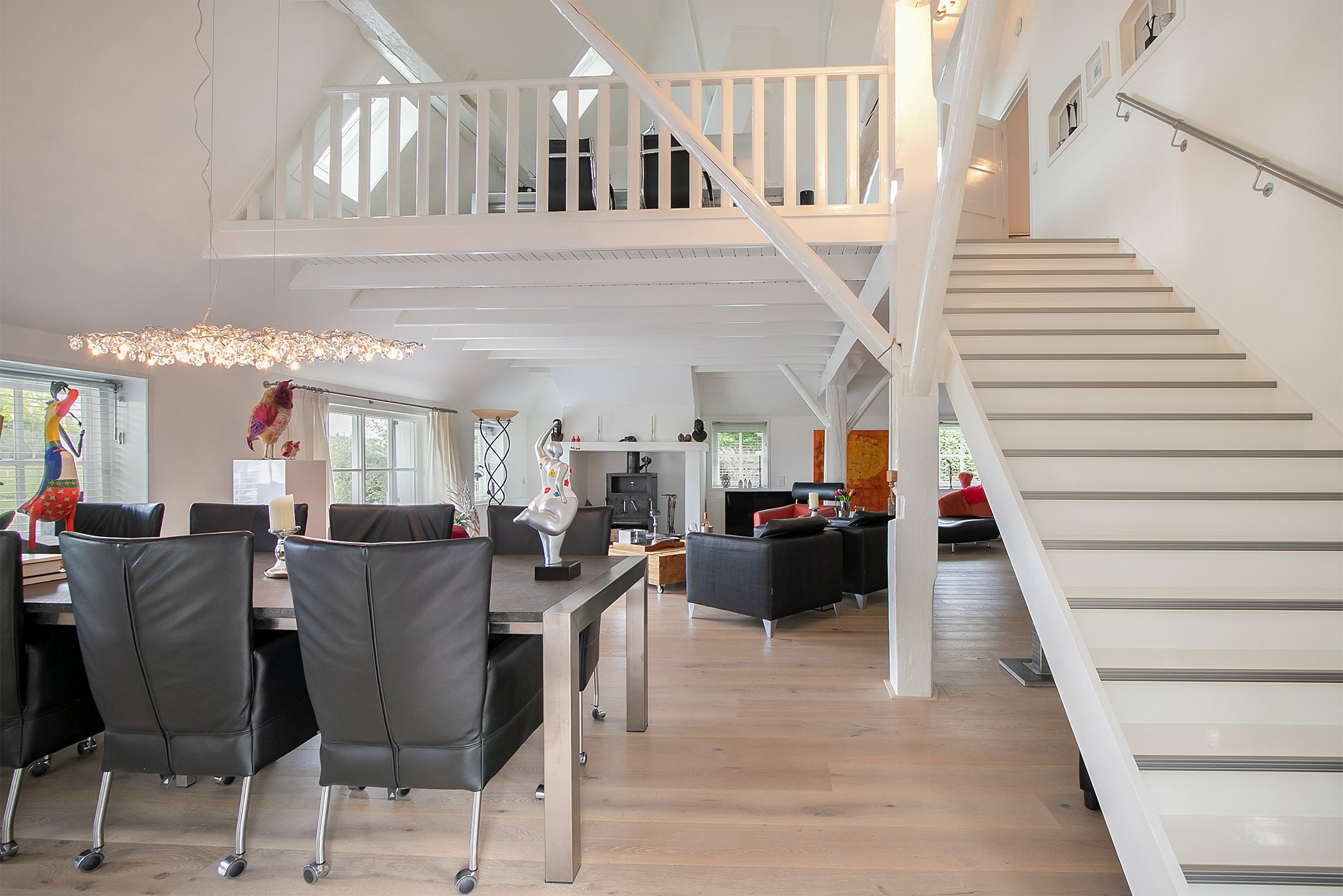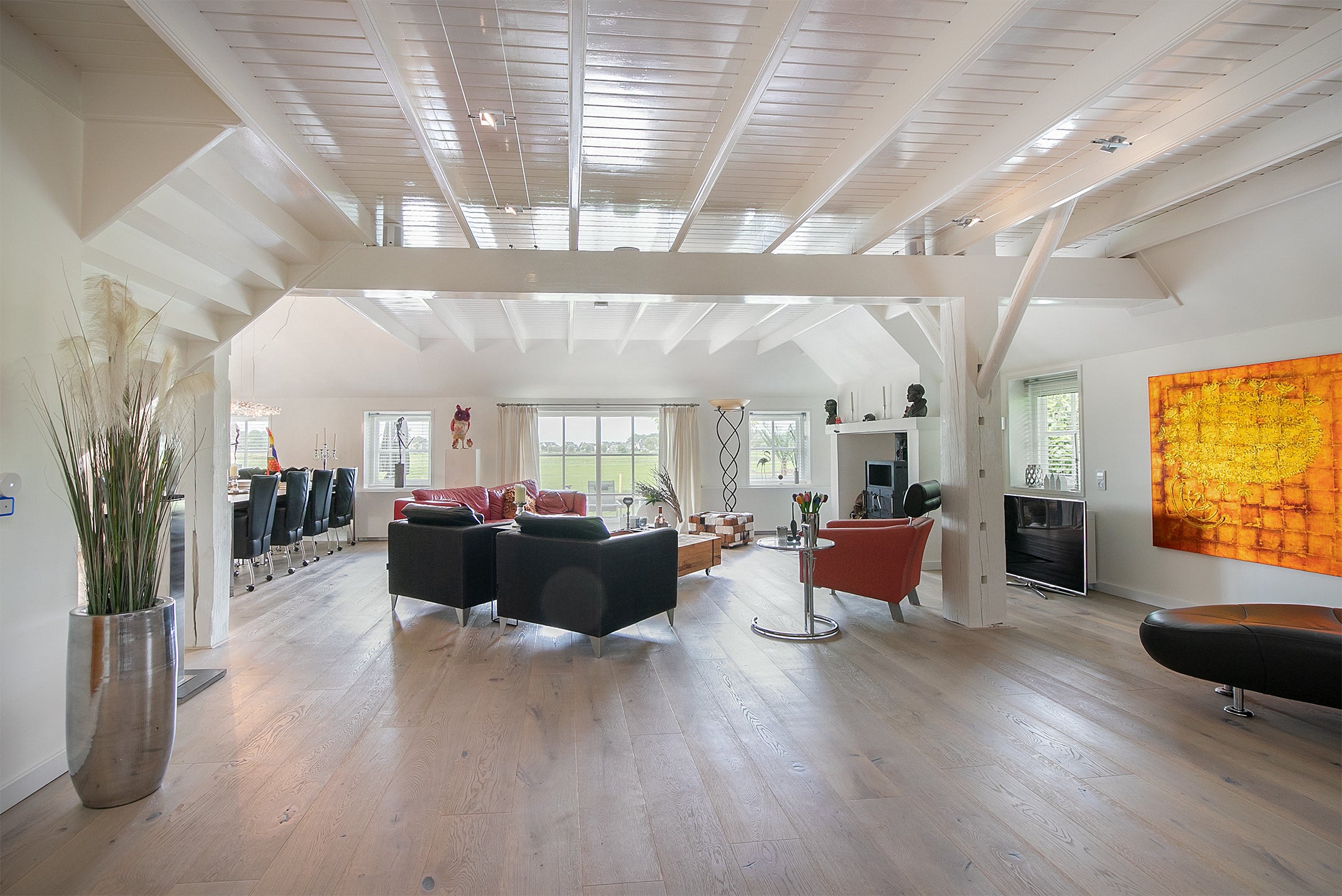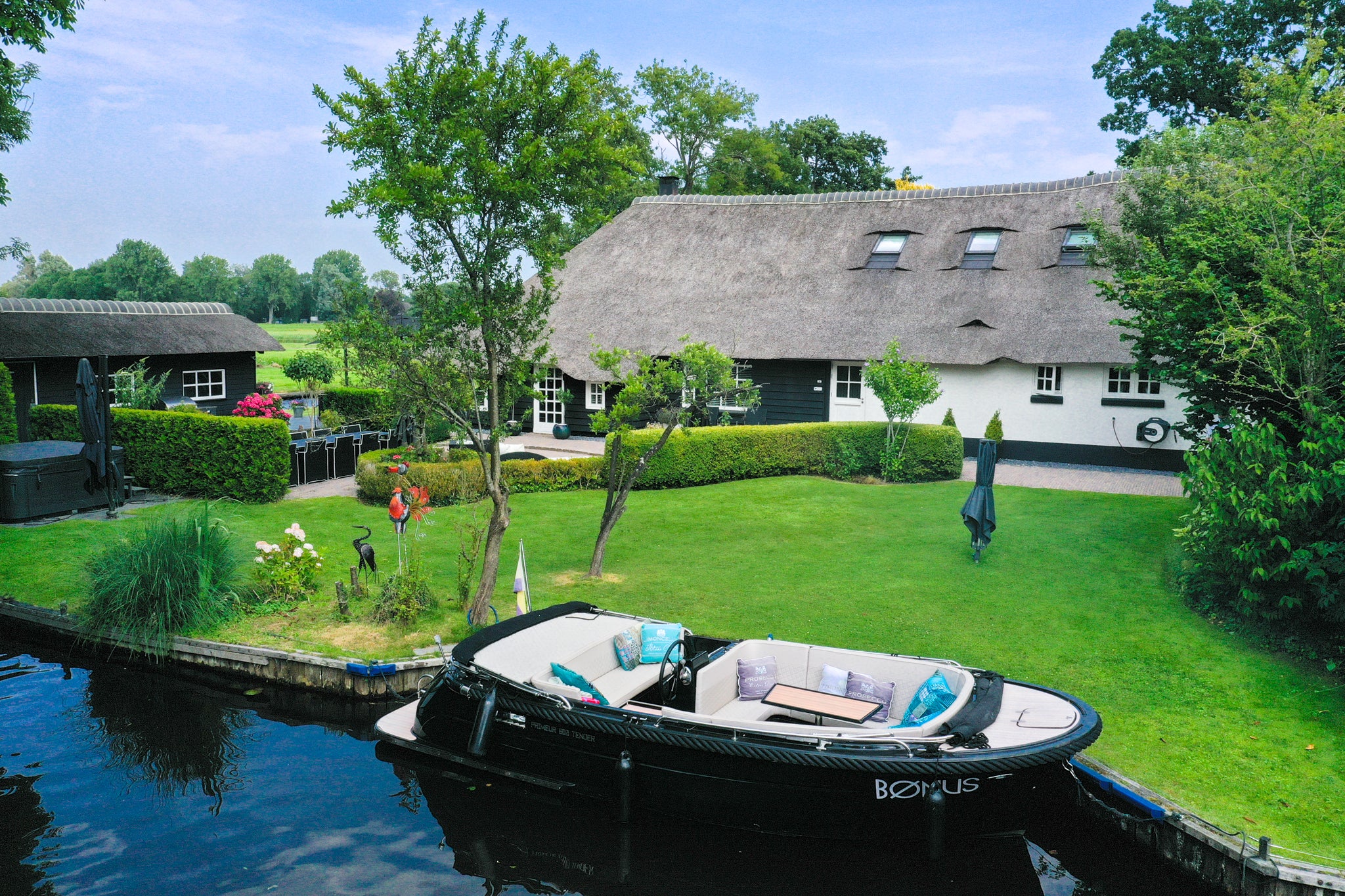 Deze moderne woonboerderij ligt aan doorgaand vaarwater en biedt een prachtig uitzicht over het natuurgebied De Wieden. Tijdens de uitgebreide renovatie zijn originele elementen behouden, zoals gebinten en schouwen. De indeling omvat een ruime woonkamer aan de tuinzijde, een eet/leeshoek, een kantoor/kleedruimte en een moderne halfopen keuken met inbouwapparatuur. Beneden bevinden zich een complete badkamer en een slaapkamer met uitzicht op de tuin. De verdieping heeft een vide, een werkplek en twee ruime slaapkamers, alle met dakramen. De woning staat op een kavel van 1703 m², met aanlegmogelijkheden aan beide zijden en een eigen aanlegsteiger. De verzorgde tuin biedt volop privacy. Giethoorn, bekend als het 'Venetië van het Noorden', biedt uitstekende voorzieningen en natuur wandel- en fietsroutes.