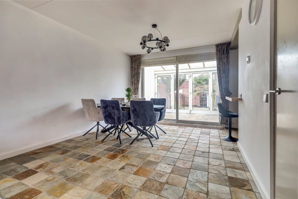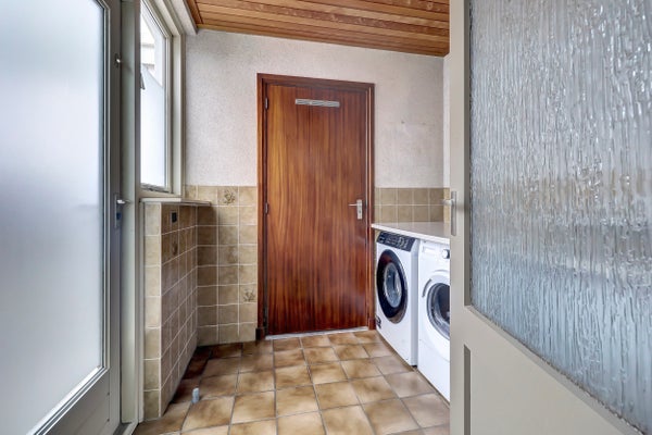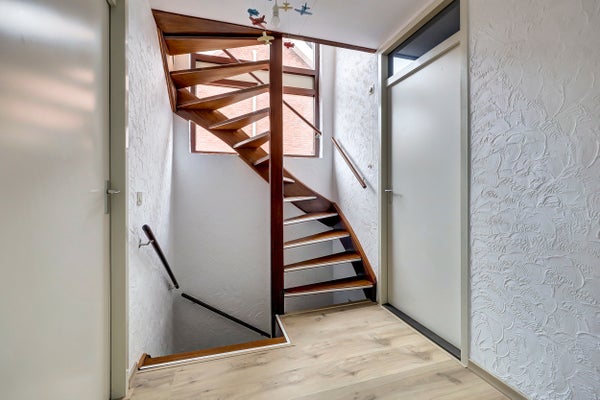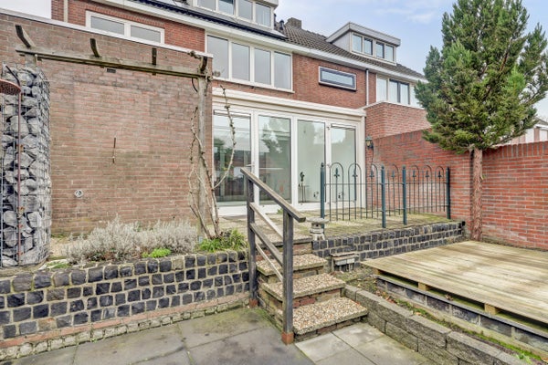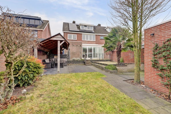 In een rustige en kindvriendelijke woonwijk staat deze ruime 2/1-kapwoning met een dubbele garage en een zonnige tuin op het westen. Het perceel omvat 363 m², aangevuld met een extra stuk grond van circa 114 m² voor de tweede garage en een moestuin. De woning beschikt op de begane grond over een lichte woonkamer met gashaard, een open keuken met moderne apparatuur, een bijkeuken en een serre. Boven zijn drie slaapkamers en een badkamer. De vaste trap leidt naar de zolder met een slaapkamer en bergruimte.