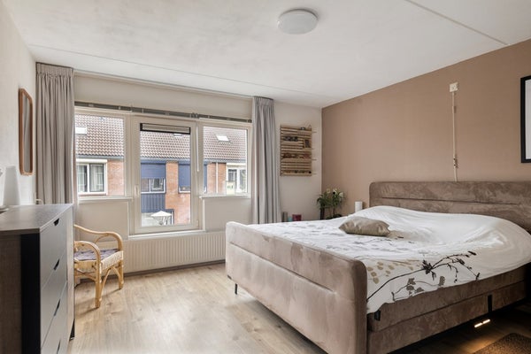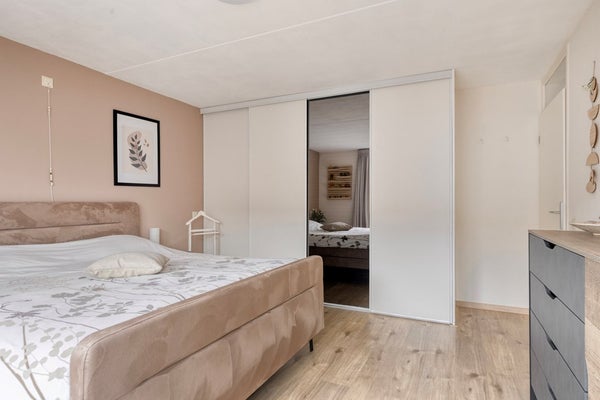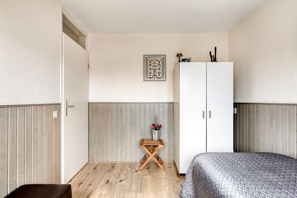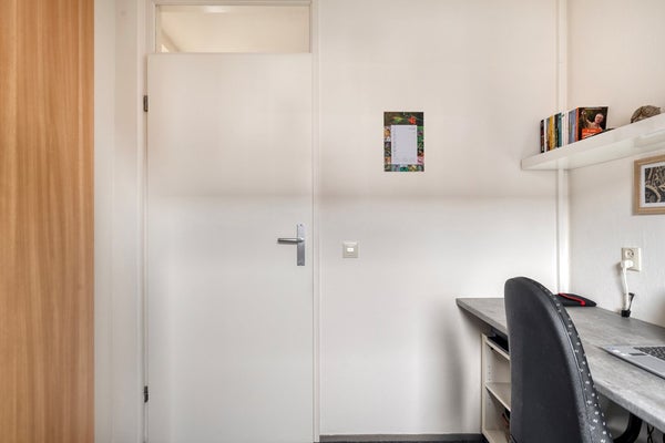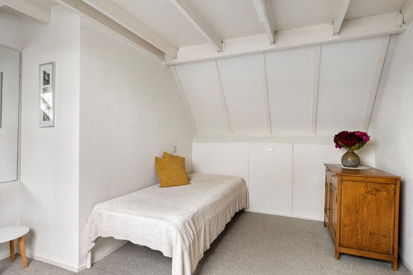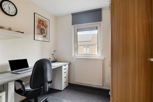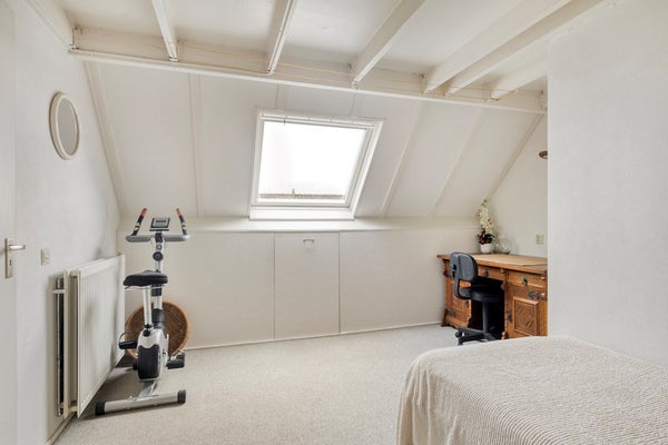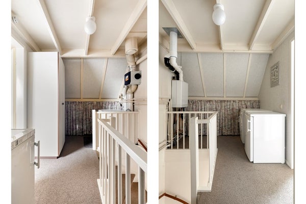 De 2e verdieping is te bereiken via een vaste trap. Op de overloop zijn de wasmachine aansluiting, mechanische ventilatie (Itho), omvormer ( 6 zonnepanelen 2022) én de cv-opstelling (HR Combiketel Intergas HRE A28/24, 2021) aanwezig. Verder beschikt de overloop over veel bergruimte. De 4e slaapkamer is riant te noemen. Fijn is dat deze slaapkamer is voorzien van een Velux-dakraam en veel bergruimte in de schuine kap. Kortom, een ideale slaapkamer/studeerkamer/werkkamer.