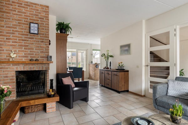 Via de nette voortuin komt u aan bij de overdekte entree van de woning. Binnen gekomen in de hal treft u aan de rechterzijde de garderobe en meterkast, de trapopgang naar de 1e verdieping, het toilet met fontein en de deur naar de woonkamer. De woonkamer met elektrische openhaard (evt. andere haard mogelijk!) is ruim opgezet met het zitgedeelte aan de voorzijde. De grote raampartijen aan zowel de voor- en achterzijde maakt het een lichte en fijne ruimte. Aan de achterzijde van de woning is de serre én ook de keuken gesitueerd, afgescheiden door een lage scheidingsmuur met afzetmogelijkheid, is deze redelijk uit het zicht gelegen en waardoor er alsnog een ruime half-open keuken is gecreëerd. Deze keuken beschikt over de volgende inbouwapparatuur: vaatwasser, inductiekookplaat, combi magnetron/oven, vlakscherm afzuigkap (Itho) en koeler. Ook door de raampartij aan de achterzijde valt er heerlijk licht op het werkblad, maar kijkt u zelf ook prettig weg in uw eigen tuin.... Via de serre/aanbouw bereikt u de achtertuin. Al met al dé perfecte begane grond, licht en ruim!