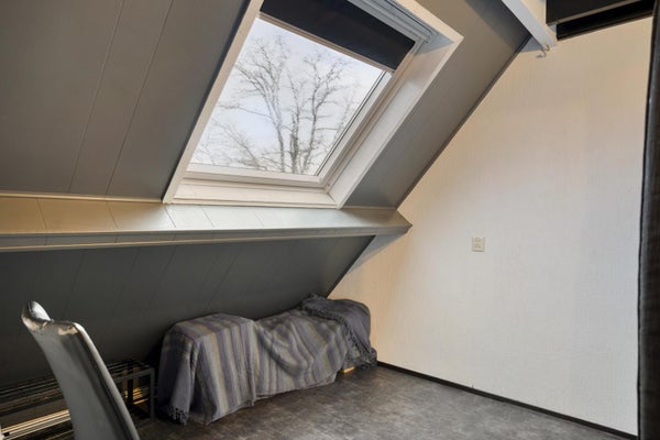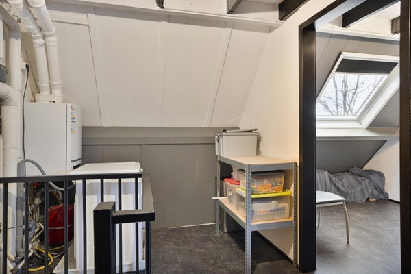 De tweede verdieping biedt nog eens twee volwaardige slaapkamers, beide voorzien van een dakraam. Op de overloop bevinden zich de cv-opstelling en de aansluiting voor de wasmachine. Een ideale verdieping voor oudere kinderen, werken aan huis of gasten.
