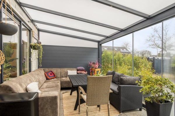 De woning is met zorg onderhouden en grotendeels voorzien van kunststof kozijnen en gevelbetimmering. De volledige isolatie en de aanwezigheid van negen zonnepanelen zorgen voor comfortabel en energiezuinig wonen, wat resulteert in energielabel B. De aangebouwde tuinkamer is een absolute eyecatcher. Dit is een plek waar je het hele jaar door kunt genieten, of het nu gaat om een zonnige zomerdag of een frisse winteravond. Achter de woning ligt een groen plantsoen met speeltoestellen, wat zorgt voor een vrij en open gevoel. Parkeren kan eenvoudig op de eigen oprit of in de achterliggende straat.