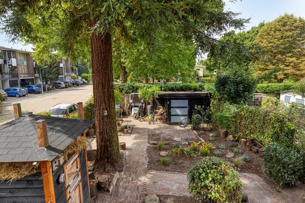De ruime, westelijk gelegen tuin biedt volop privacy en zonuren. De tuin is voorzien van een sfeervolle veranda, blokhut en berging. Dankzij het ontbreken van achterburen geniet je hier van rust en vrijheid.