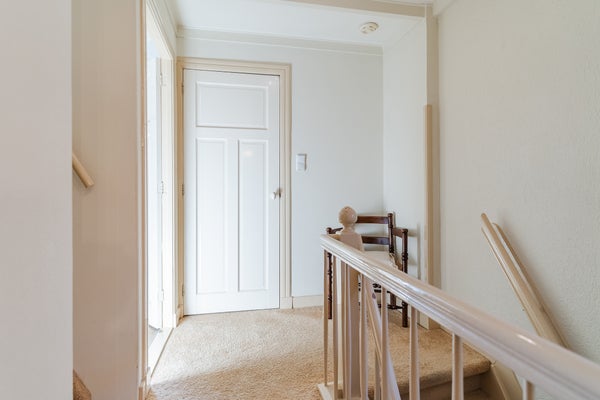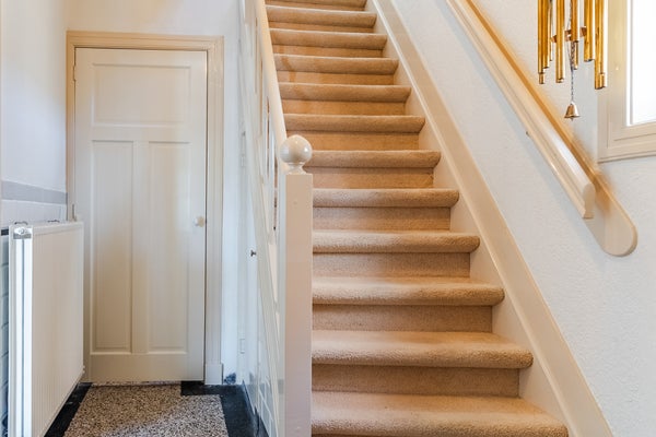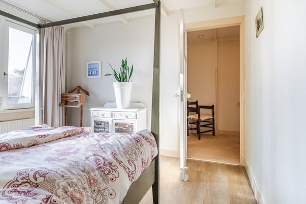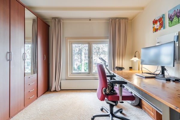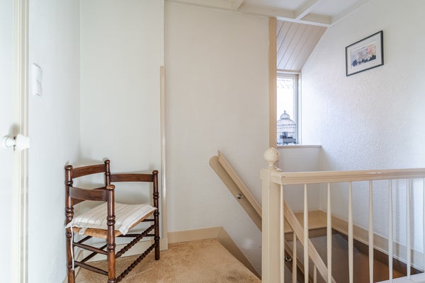 De hal biedt toegang tot de kelder en leidt je naar de lichte woonkamer met open keuken. Deze is praktisch ingericht met inbouwapparatuur zoals een inductiekookplaat en vaatwasser. Op de eerste verdieping zijn twee slaapkamers, een werkruimte en een complete badkamer met ligbad. De tweede verdieping biedt nog eens twee slaapkamers en veel bergruimte.