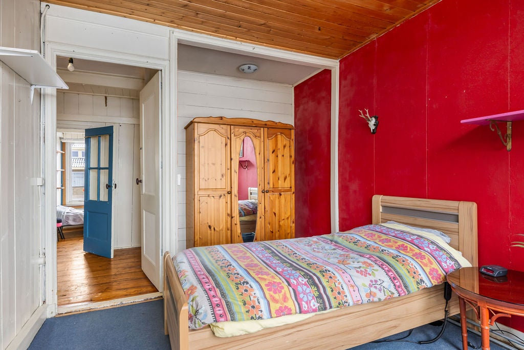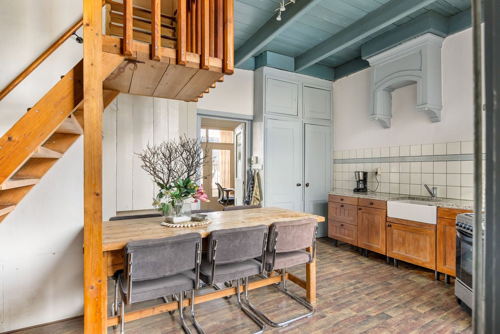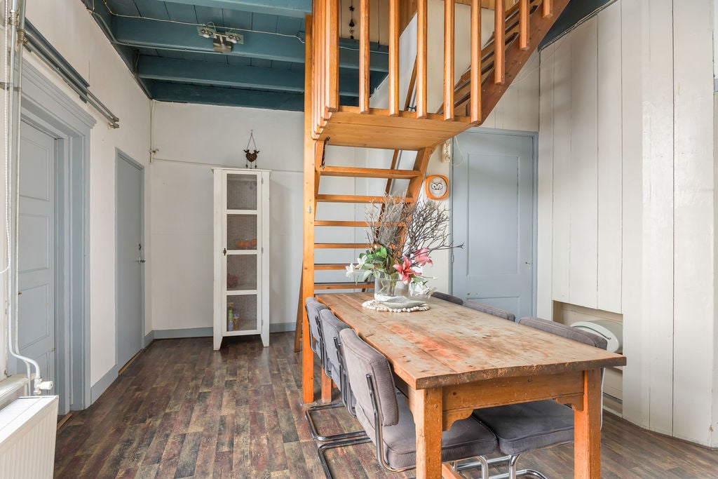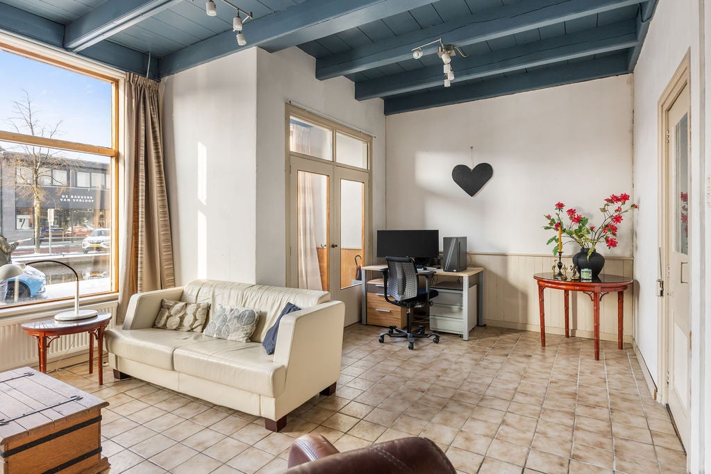 Deze karakteristieke woning, oorspronkelijk een pakhuis uit ca. 1870, bevindt zich in het hart van Gorredijk aan de Opsterlandse Compagnonsvaart. Met een woonoppervlakte van 208 m² en een perceel van 280 m² biedt het veel ruimte en mogelijkheden. De ruime woonkamer heeft een authentieke uitstraling met oude bedstedes en een houten balkenplafond. De royale leefkeuken leidt naar een toilet en de trap naar de eerste verdieping met twee slaapkamers en een modern badkamer. Het multifunctionele pakhuis heeft een extra slaapkamer, en op de eerste verdieping vind je een grote multifunctionele ruimte en tweede badkamer. De achtertuin van 120 m² en de nabijheid van voorzieningen maken het een ideale plek voor wonen en werken.
