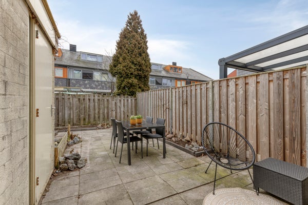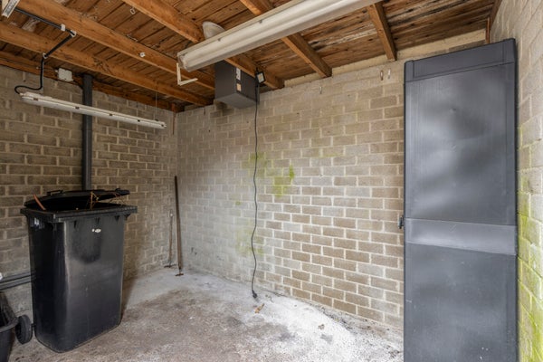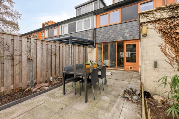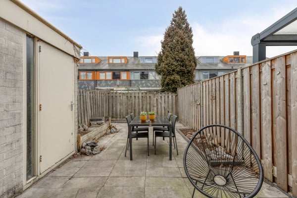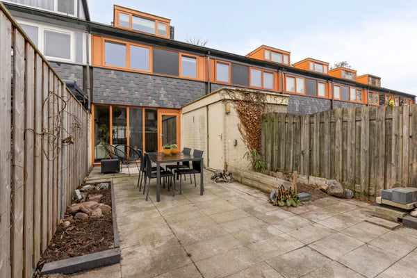 De woning beschikt over een voortuin en een achtertuin. De achtertuin is voorzien van een ruime stenen berging en biedt voldoende ruimte om een fijne buitenplek te creëren.