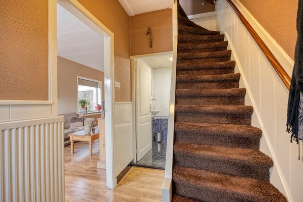 De vloer van de begane grond is belegd met parket.
