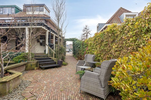 Een riante overkapping/veranda aan zijzijde en aan de achterzijde van de woning.