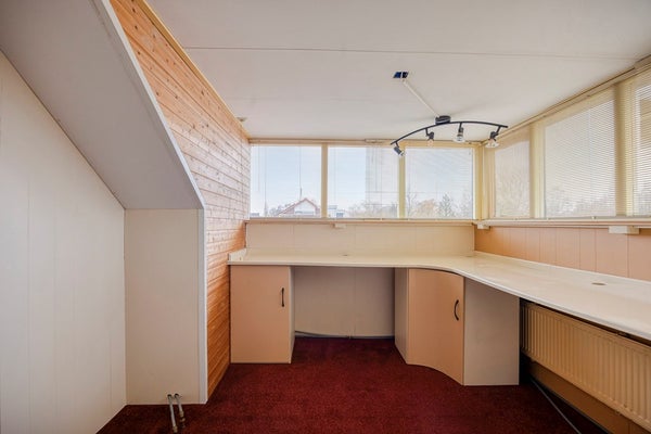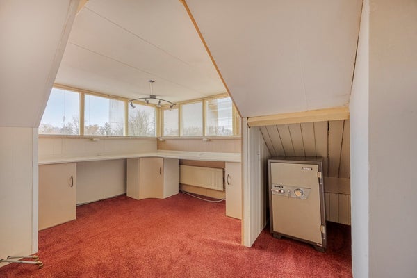 Op de tweede verdieping de derde slaap/werkkamer, met dakkapel en bergruimte.