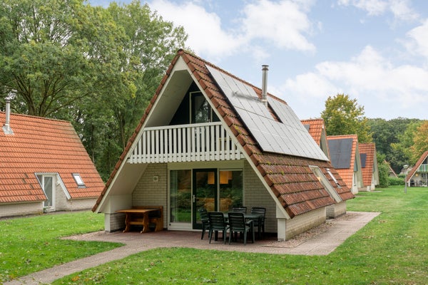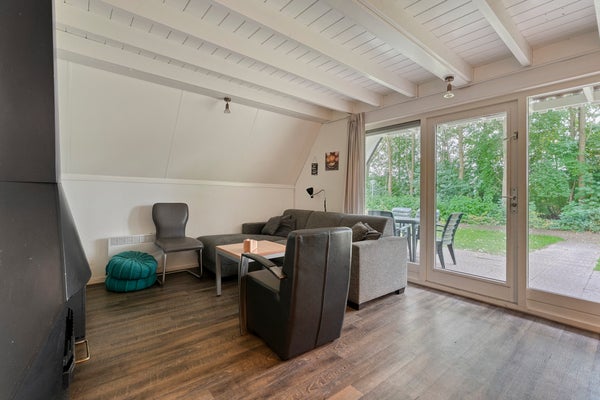 Gelegen in het rustige vakantiepark 't Hooge Holt, heeft deze vrijstaande recreatiewoning ruimte voor 6 personen. Met een oppervlakte van ongeveer 60 m² beschikt de woning over een slaapkamer en badkamer op de begane grond, een sfeervolle houtkachel, en 17 zonnepanelen. De indeling is praktisch, met een ruime hal en trap naar de eerste verdieping. De tuin is volledig omringend, biedt privacy en gaat over in een speelveld aan de achterkant, ideaal voor gezinnen. Het perceel van 360 m² is volledig eigendom.