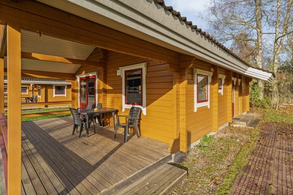 Op Vakantiepark ’t Hooge Holt staat recreatiewoning R-70 te koop, een houten bungalow met Scandinavisch karakter en gelegen op een perceel van 350 m². Gebouwd in 1995, is de woning volledig gasloos, wat bijdraagt aan de energiezuinigheid. De centrale ligging biedt snel toegang tot voorzieningen zoals zwembaden en sportfaciliteiten. Binnenin voelt de ruime woonkamer, met hoge nok en grote ramen, erg sfeervol aan, terwijl de houtkachel voor extra comfort zorgt. De bungalow heeft twee slaapkamers, een apart toilet en een badkamer met ligbad en inloopdouche. De woning is goed onderhouden en klaar om direct in gebruik te nemen. Met een afgesloten wasruimte en een tuin rondom is dit een compleet vakantiehuis voor optimaal recreëren.