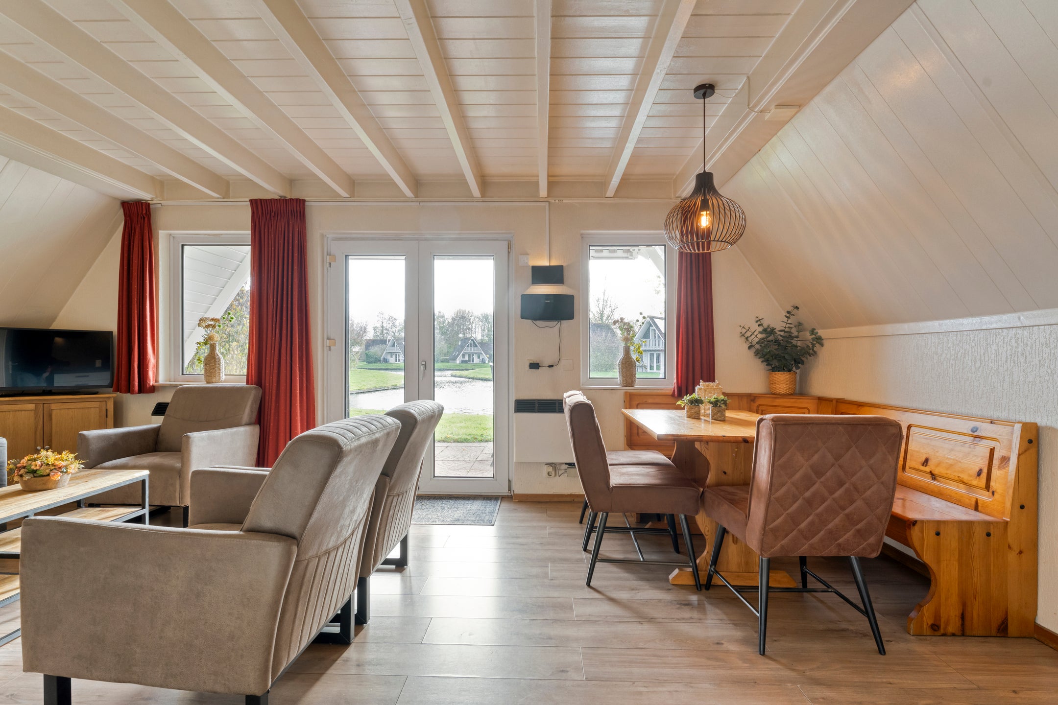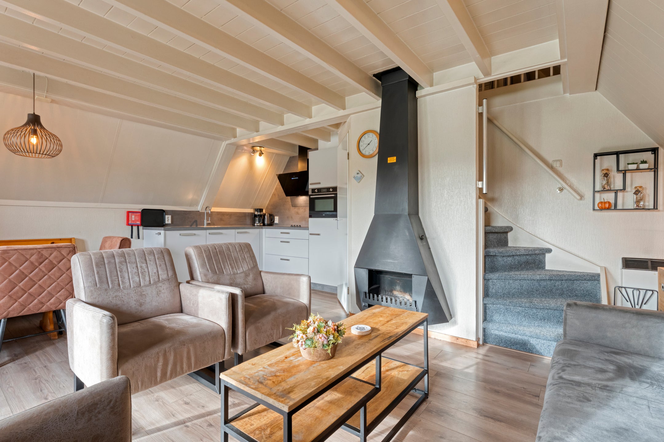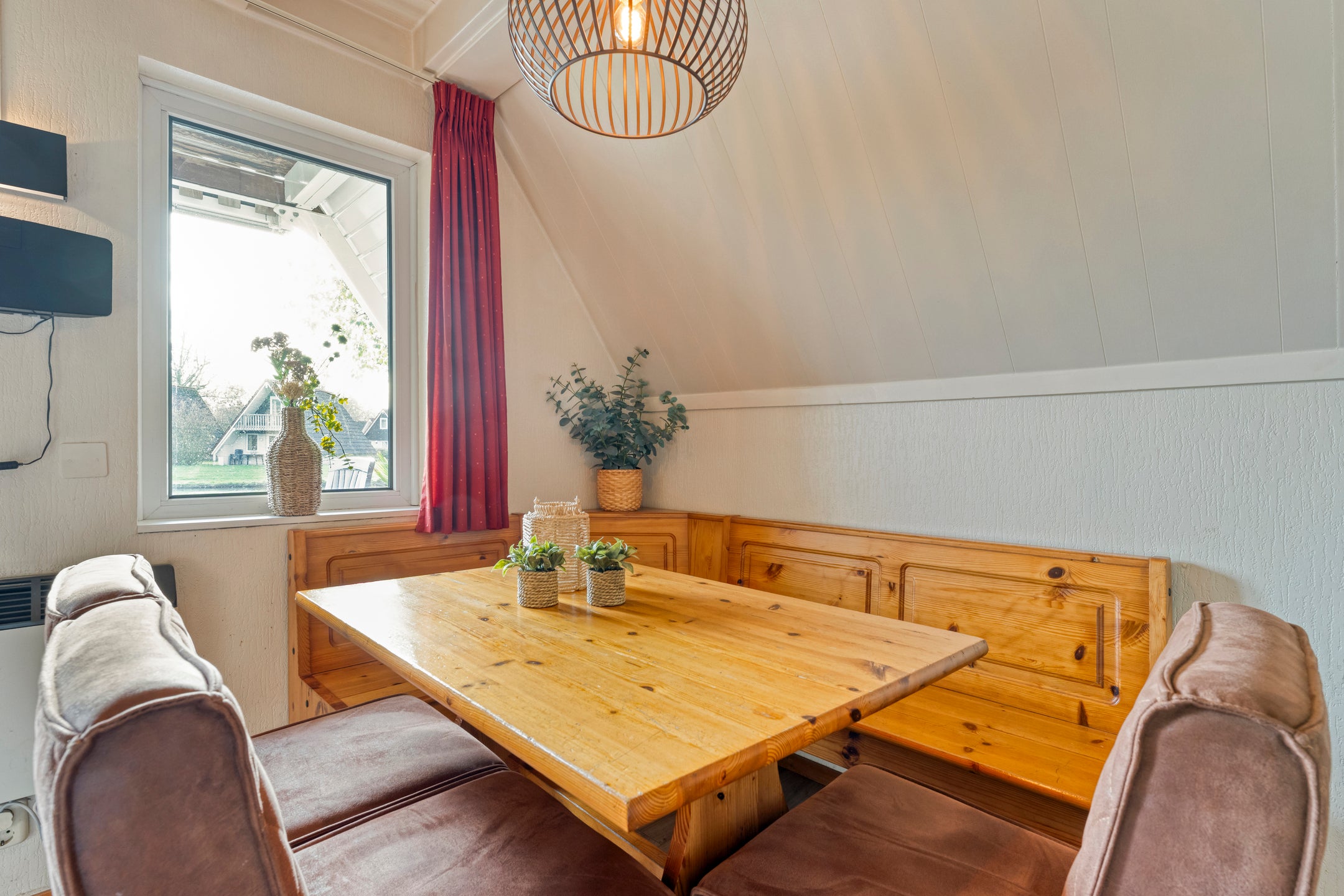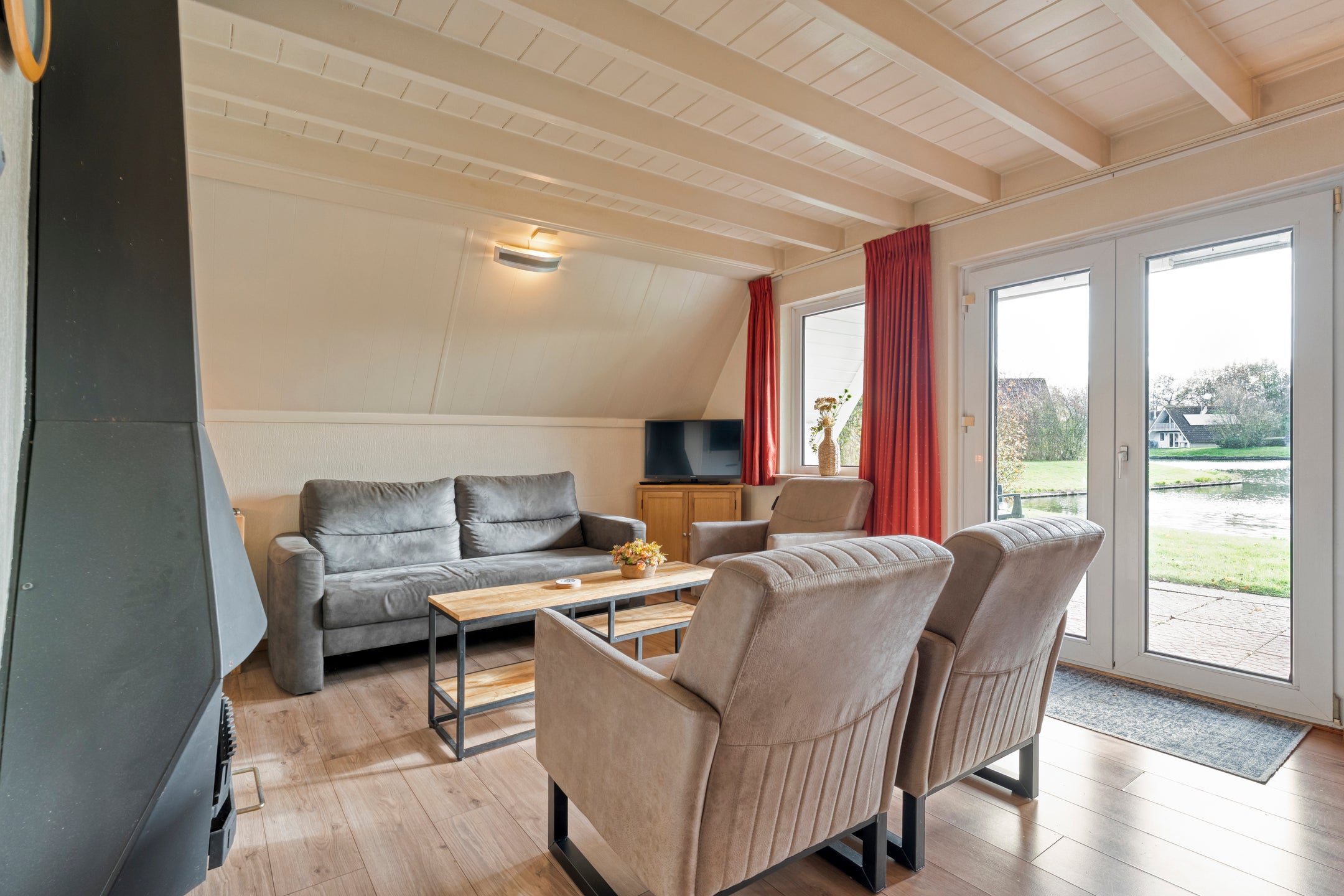 Op een prachtige locatie aan het water staat deze sfeervolle, vrijstaande recreatiewoning. De bungalow, geschikt voor zes personen, heeft een praktische indeling met een slaapkamer en een badkamer op de begane grond. De lichte woonkamer, uitgerust met een houtkachel, biedt toegang tot een zonnig terras op het zuiden, waar u kunt genieten van het uitzicht over het water. Het perceel van ca. 339 m² omvat ook een inpandige berging met wasmachine en droger.