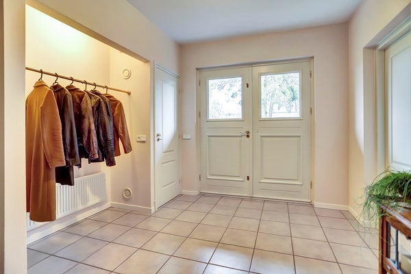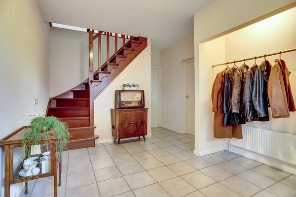 Binnen stap je de royale hal in: licht, ruim en overzichtelijk. Rechts vind je de meterkast met maar liefst 10 groepen en krachtstroom wat zowel praktisch als toekomstbestendig is. De garderobe met ingebouwde verlichting biedt een mooie plek om jassen en schoenen netjes op te bergen.