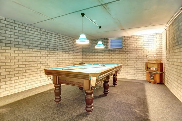 Naast deze ruimte ligt een tweede, royale kelderkamer. Hier staat momenteel een biljarttafel en je ziet meteen de mogelijkheden. Denk je aan een sport- of fitnessruimte, een bar, een muziekstudio, atelier of grote hobbykamer? Wat je droom ook is, hier kan hij vorm krijgen.