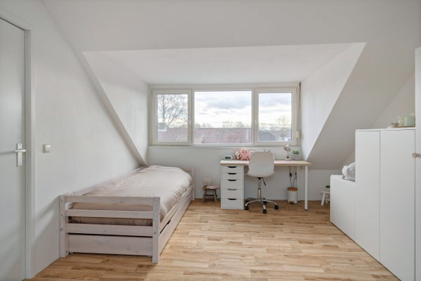 Stap binnen in dit huis en voel meteen de rust en ruimte. De woonkamer is uitnodigend met een praktische indeling die inrichting en gezelligheid faciliteert. De keuken functioneert centraal en biedt toegang tot de achtertuin, waar je kunt genieten van de zon in de middag en avond. De eerste verdieping herbergt drie lichte slaapkamers en een verzorgde badkamer met ligbad en wastafel. Een vaste trap leidt naar de zolder, ingericht als vierde slaapkamer, met extra bergruimte.