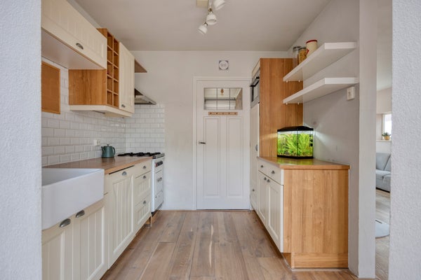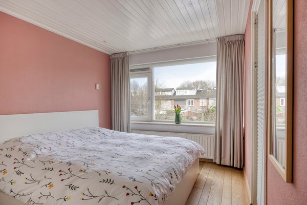 In de rustige en groene wijk De Mars in Grave staat deze nette hoekwoning aan de Van Egmondstraat 8. Op de begane grond bevindt zich een royale leefverdieping, met een ruime woonkamer en een semi-open keuken. De woonkamer heeft veel natuurlijk licht door de uitbouw en de openslaande tuindeuren, wat een mooi contact met de achtertuin biedt. De bijkeuken biedt extra bergruimte en toegang tot de tuin. Op de eerste verdieping vindt u drie slaapkamers, waarvan twee met inbouwkasten, en een verzorgde badkamer met douche en wastafel. De zolder, toegankelijk via een vaste trap, heeft opbergruimte en potentieel voor een extra kamer. De westelijk gelegen achtertuin heeft meerdere zitmogelijkheden en biedt veel privacy. Dit huis ligt in een geliefde, groene wijk en is dichtbij voorzieningen.