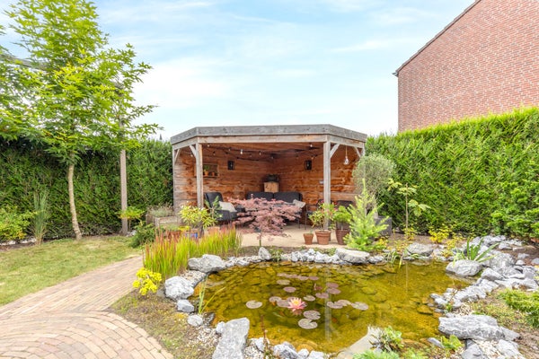 Dit instapklare 2-onder-1-kapwoning in Grevenbicht heeft 3 slaapkamers en een prachtige tuin. De toegang via de fronttuin leidt naar een hal met een stijlvolle tegelvloer en de meterkast. De ruime keuken van 12 m² is voorzien van inbouwapparatuur, waaronder een 5-pits gasfornuis en vaatwasser. De woonkamer van ca. 30 m² heeft een laminaatvloer en rolluiken. De fraai aangelegde achtertuin bevat verharding, borders, een vijver, lounge overkapping van ca. 10 m² en een stenen berging. Op de eerste verdieping bevinden zich 2 ruime slaapkamers en een luxe badkamer met dubbele wastafel, ligbad en inloopdouche. De tweede verdieping biedt een 3e slaapkamer van ca. 15 m², ook met dakraam. Energielabel D, met goede isolatie en cv-ketel uit 2020.