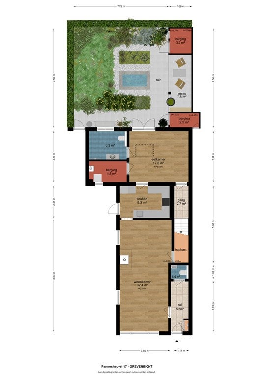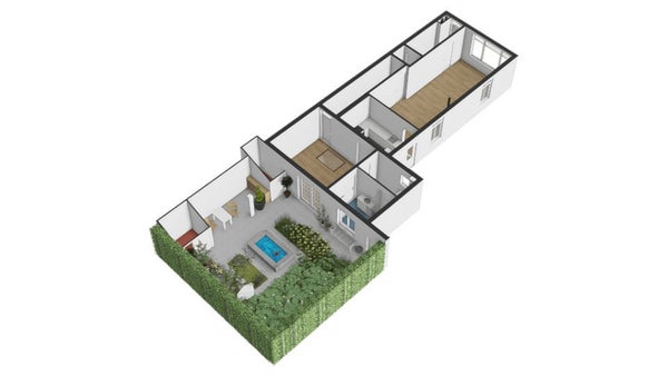 - Aanwezig (54 m², gelegen op het zuidwesten)