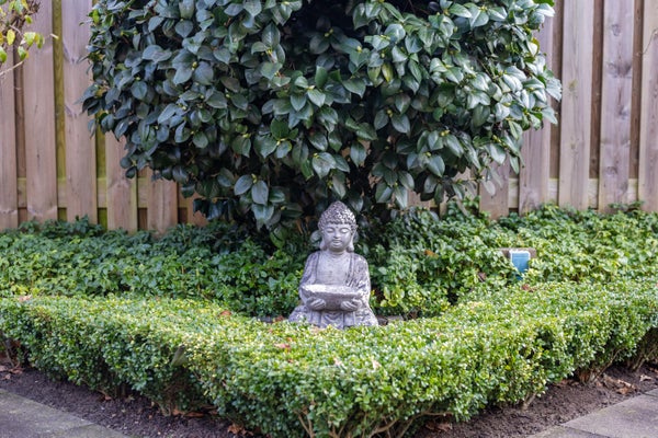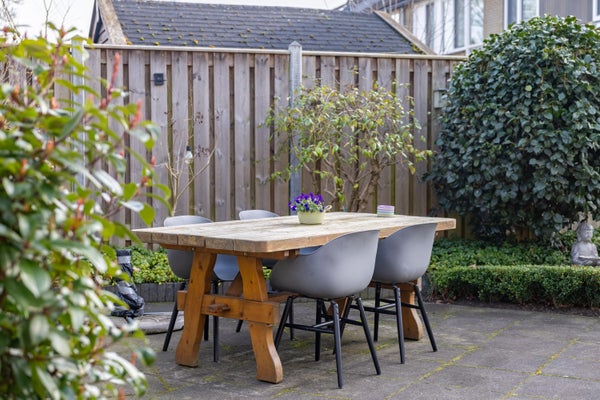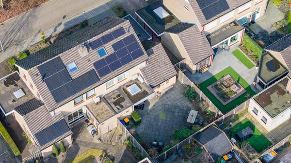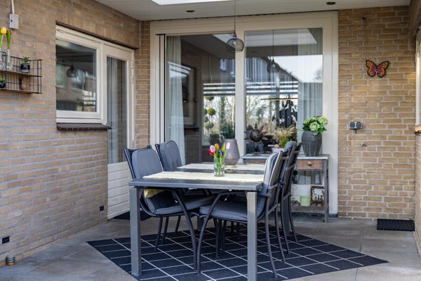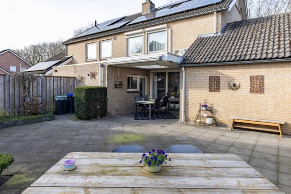 De heerlijk ruime achtertuin is gelegen op het zuidoosten en staat garant voor genoeg zonuren door de dag heen. Je zit er prinsheerlijk in de schaduw onder de overkapping met extra zonnescherm. Maar natuurlijk ook nog genoeg terras tot je beschikking om leuke zithoekjes in de zon te creëren. Ook de fervente klusser kan hier straks z’n hart ophalen in de riante garage. Daarnaast plek genoeg voor de fietsen of je motor. Er zijn wat woningen in de straat die hier een extra kamer hebben gerealiseerd door vanuit de keuken een doorbraak te maken. Leuk om daar tijdens een uitgebreide bezichtiging eens naar te kijken. Als laatste noteren we hier de omvormer van de dertien zonnepanelen die toch mooi je energienota drukken en de airco’s graag laten koelen en verwarmen!