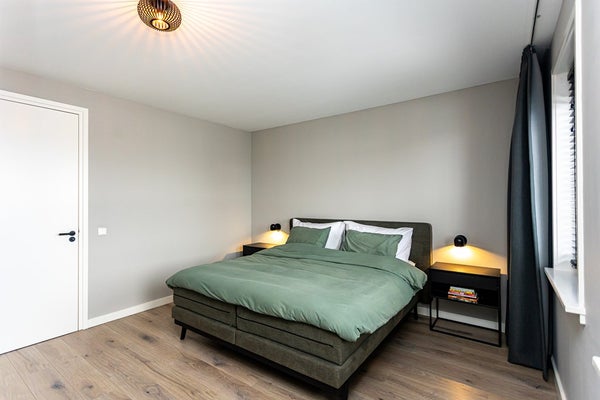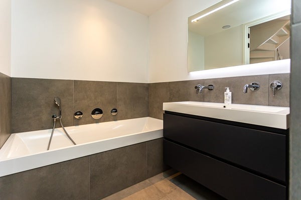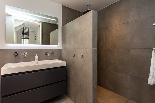 overloop, 3 slaapkamers (ouderslaapkamer met ruime inloopkast), luxe moderne badkamer met inloopdouche, ligbad-/douchecombinatie, dubbele wastafel in badkamermeubel, separaat luxe (hang)toilet met fontein.
