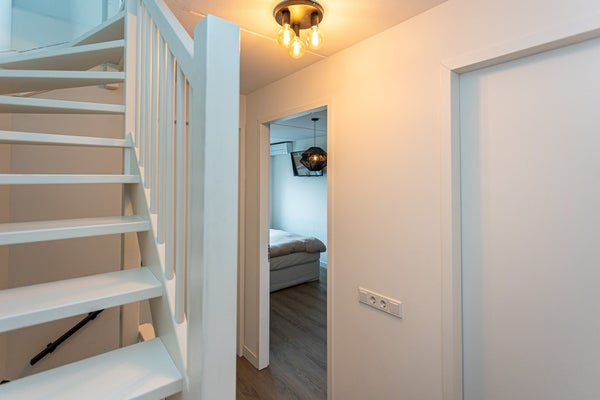 overloop, 3 slaapkamers (ouderslaapkamer met airco-unit), luxe moderne badkamer met douchecabine, twee wastafels in badkamermeubel en 2e toilet. De 1e verdieping is voorzien van vloerverwarming en PVC-vloer.
