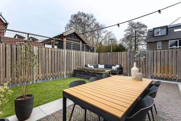 Instapklare keurig onderhouden luxe en sfeervol ingerichte HOEKWONING met ruime houten TUINBERGING, onderhoudsvriendelijke tuin met achterom gelegen in een jonge moderne nieuwbouwwijk.