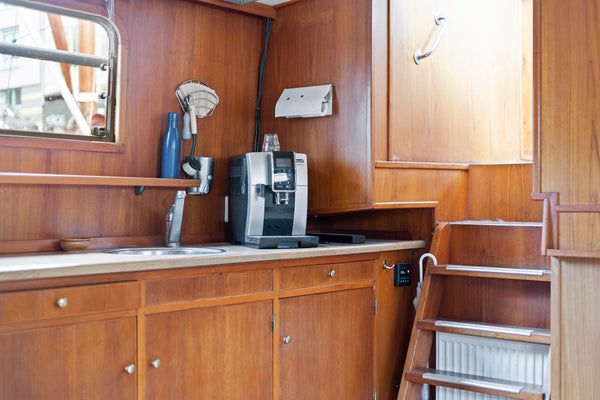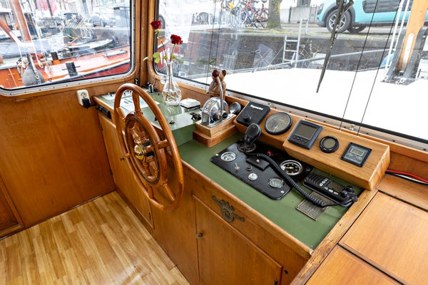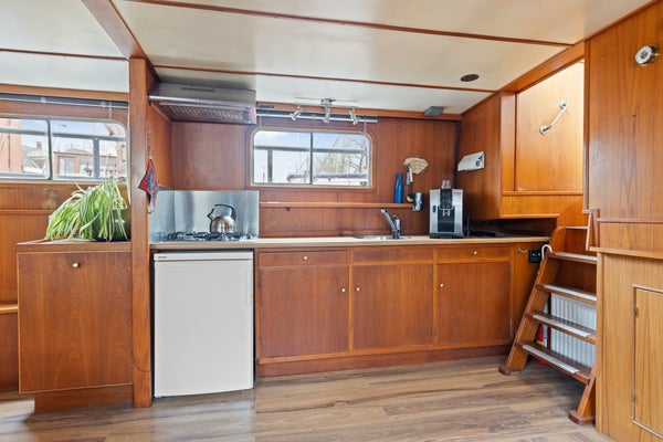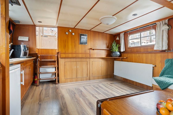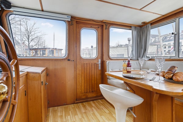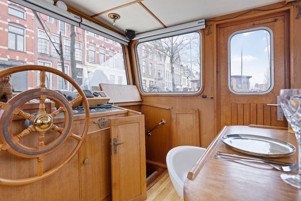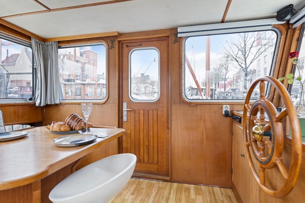 Toen ik hier de eerste keer aankwam zag ik direct de Noorderzon liggen. Door de witte kleur en mooie kajuit valt dit schip op tussen de andere schepen in de dynamische Noorderhaven. Bij binnenkomst viel het teakhouten interieur direct op, alles is authentiek en op maat gemaakt. Prachtig! En dat het een varend schip is maakt het extra bijzonder. Kom jij bezichtigen? Ik geef je graag een rondleiding! - Maaike iQ Makelaars Groningen