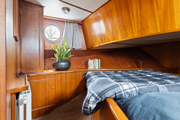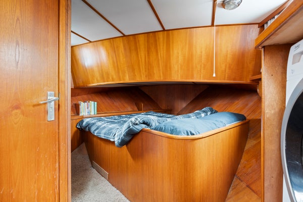Het mooie is dat huis en haard mee kunnen als je eropuit wilt. De vorige eigenaar voer graag naar Amsterdam, het Lauwersmeer en de Wadden. Ook Denemarken via Duitsland schijnt een prachtige tocht te zijn. Wij zijn aan zulke reizen niet toegekomen; we hebben inmiddels een nog rustiger plek in het buitenland gevonden. Wel hebben we samen ons vaarbewijs gehaald. Heb je dat nog niet, dan is dat geen probleem: dit schip is niet vaarbewijs plichtig. Toch vinden we kennis van het water belangrijk, daarom bieden we de cursus en het examen voor het eerste deel cadeau bij de boot.