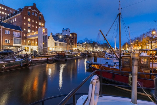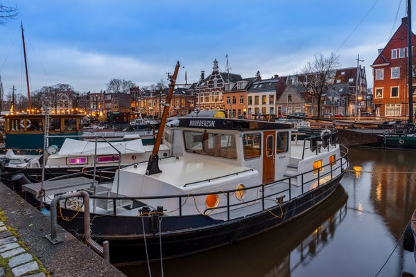 In de zomer is het leven op het dek een cadeau. Slapen onder de koele waterlijn, overdag de deuren van de kajuit open en genieten van het stadsleven en het voortdurende spel op het water. Iedere dag voelt als vakantie. In de winter verandert de haven in iets sprookjesachtigs: lampionnen, lichtjes, weerspiegelingen op het water. Juist op gure dagen is de Noorderzon warm, comfortabel en knus.