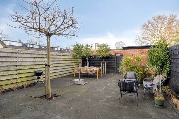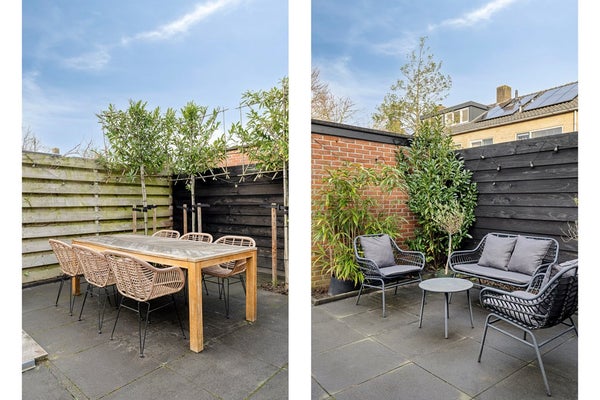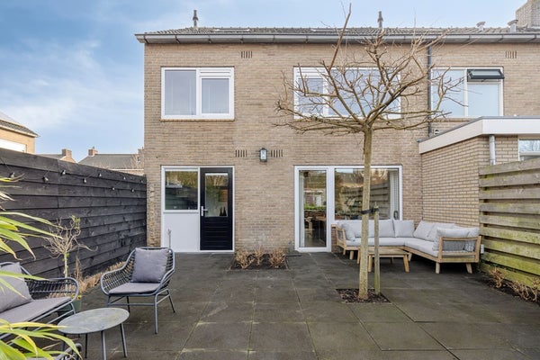 Tuin: De woning heeft een royale en nette aangelegde tuin met achterom en praktische stenen fietsenberging met elektra. De tuin is een verlenging van de woonkamer en biedt meer dan genoeg ruimte voor zomerse barbecueavonden of om te spelen met de kinderen. Dankzij de diepte, open ligging en de lage bebouwing in de omgeving is er het vanaf het voorjaar de hele dag zon!