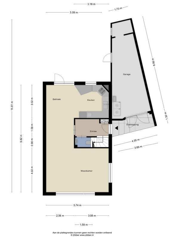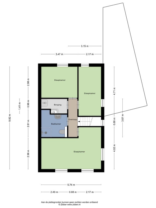 - Aanwezig (71 m², gelegen op het noordwesten)