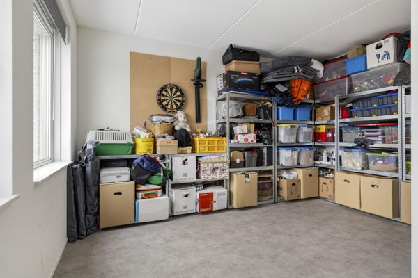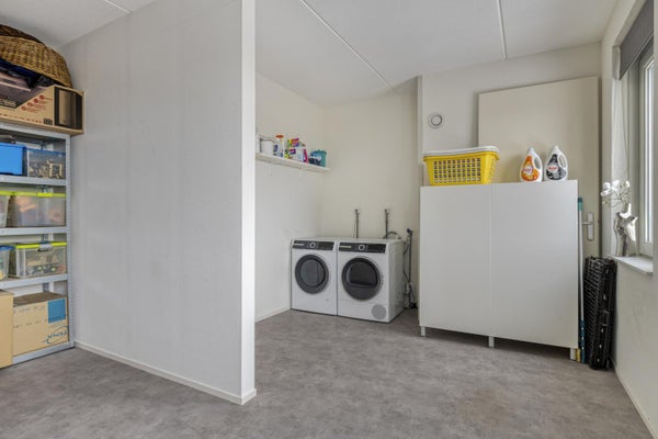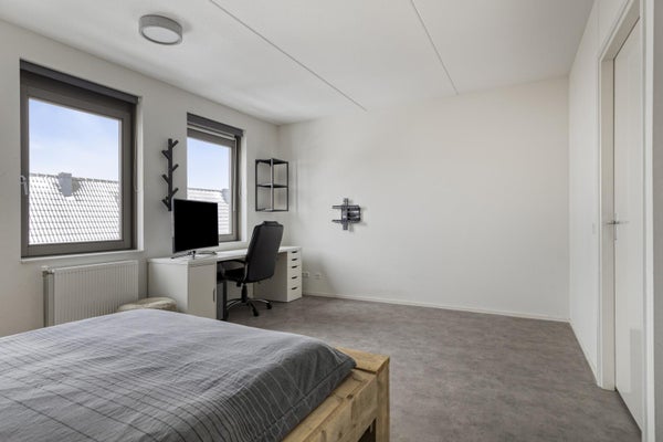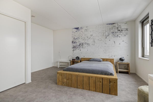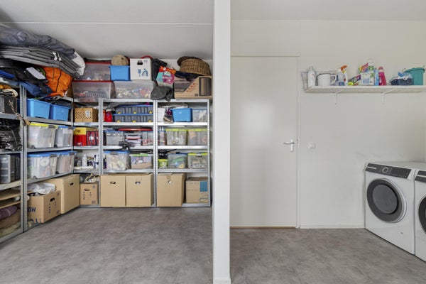 Tweede verdieping: overloop met toegang tot een ruime (was)kamer (20 m2) met wasmachineaansluiting en een zeer ruime slaapkamer van maar liefst 20m2.