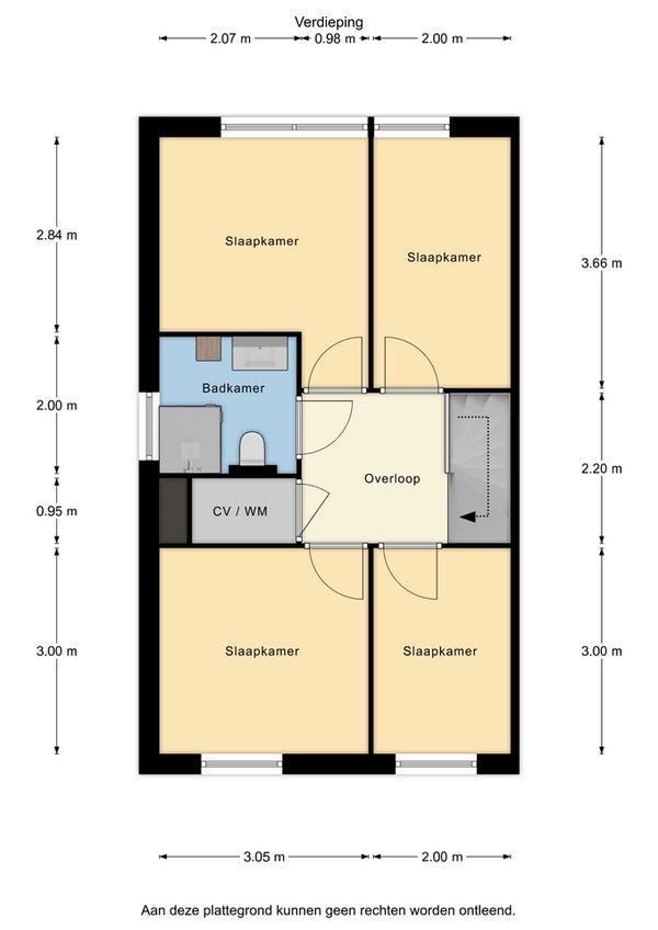 - De tussenwoning heeft een woonoppervlakte van 101 m² en beschikt over 5 kamers, waarvan 4 slaapkamers;