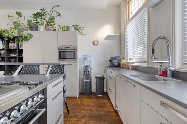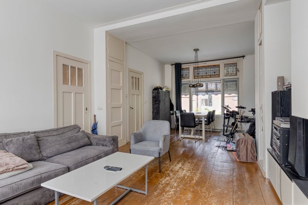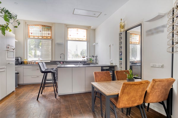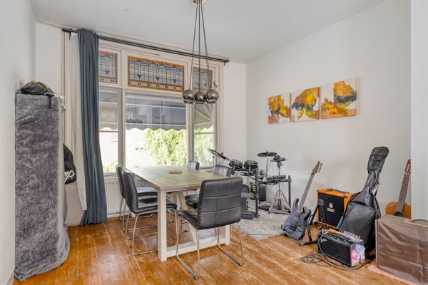 Dit moderne herenhuis, gelegen aan de Oostersingel, biedt een unieke kans om te wonen op een toplocatie in Groningen. Met ongeveer 175 m² woonoppervlak beschikt het huis over 5 slaapkamers, 2 badkamers en 2 ruime woonkamers, ideaal voor een groot gezin of dubbele bewoning. De begane grond kenmerkt zich door een stijlvolle entree en een open keuken die uitkomt op een betegelde achtertuin met overkapping. De eerste verdieping heeft een royale woonkamer met houtkachel en toegang tot een zonnig dakterras op het zuiden. Op de tweede verdieping vind je nog eens drie slaapkamers en een royale badkamer. Geniet van de rustige ligging nabij het bruisende centrum, met een zonnige tuin en eigen parkeerplek. Energielabel F, deels dubbel glas.