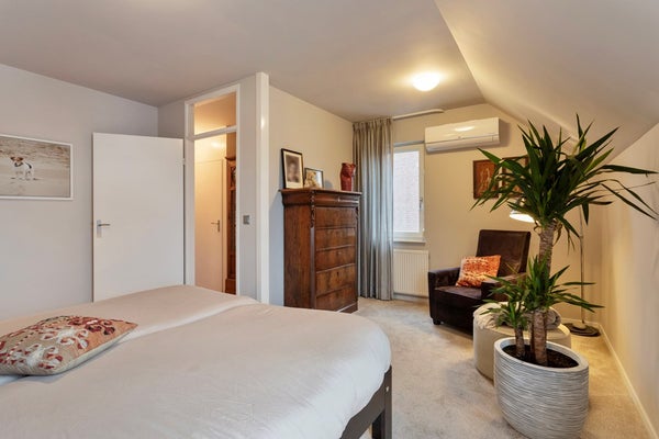 • Slaapkamer 1: Deze masterbedroom is ca. 18 m² groot en voorzien van airconditioning. Dit waren voorheen 2 slaapkamers, en is eventueel ook weer zo terug te brengen. Het kozijn en de deur is ook aanwezig, waardoor dit kan zonder veel aanpassingen terug worden gebracht naar de originele indeling.