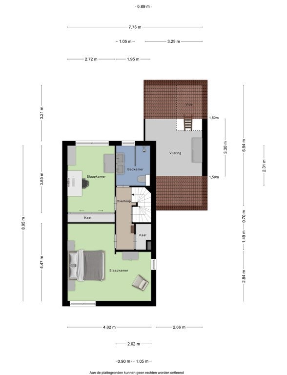 • De vermelde woonoppervlakte is exclusief de slaapkamer op de zolderverdieping.