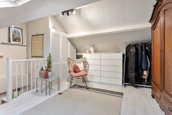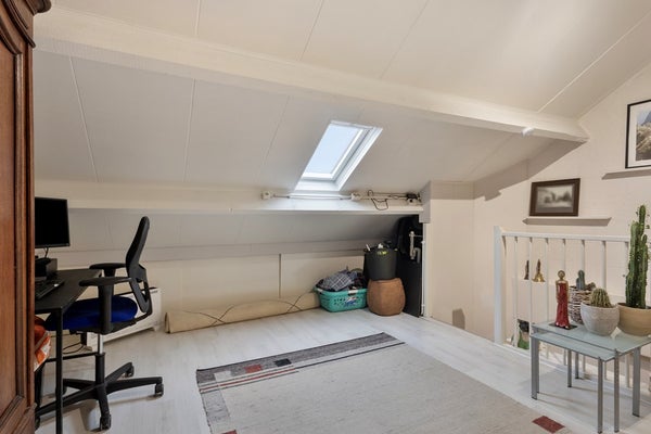 Via de vaste trap bereikt u de ruime tweede verdieping. Hier bevinden zich een royale derde slaapkamer en een separate bergruimte, met daarnaast extra opbergmogelijkheden in de schuine delen.