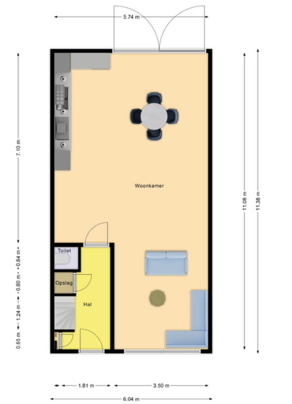 - De tussenwoning heeft een woonoppervlakte van 118 m² en beschikt over 6 kamers, waarvan 4 slaapkamers;