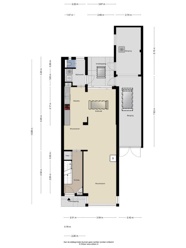 - Aanwezig (175 m², gelegen op het noordwesten)