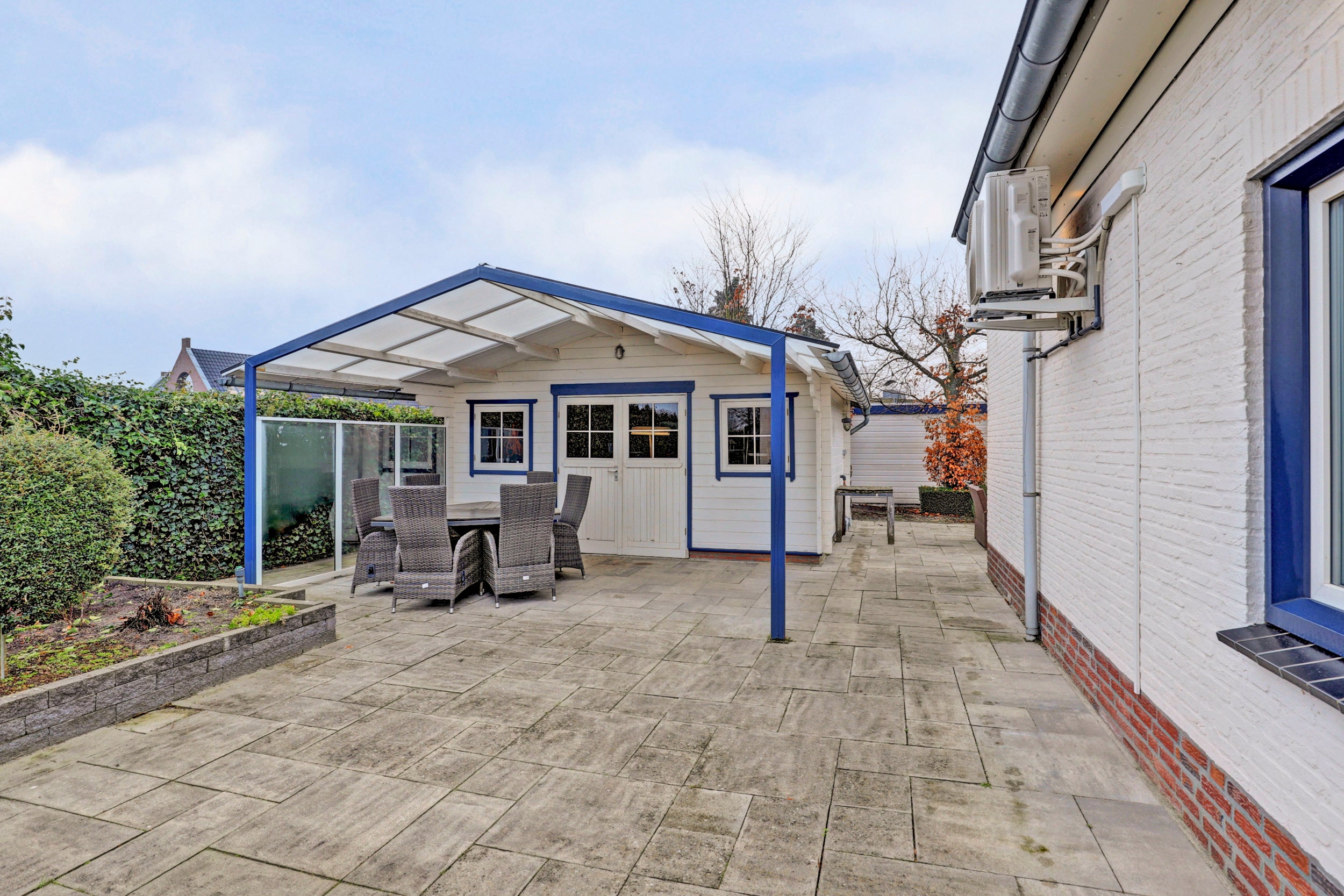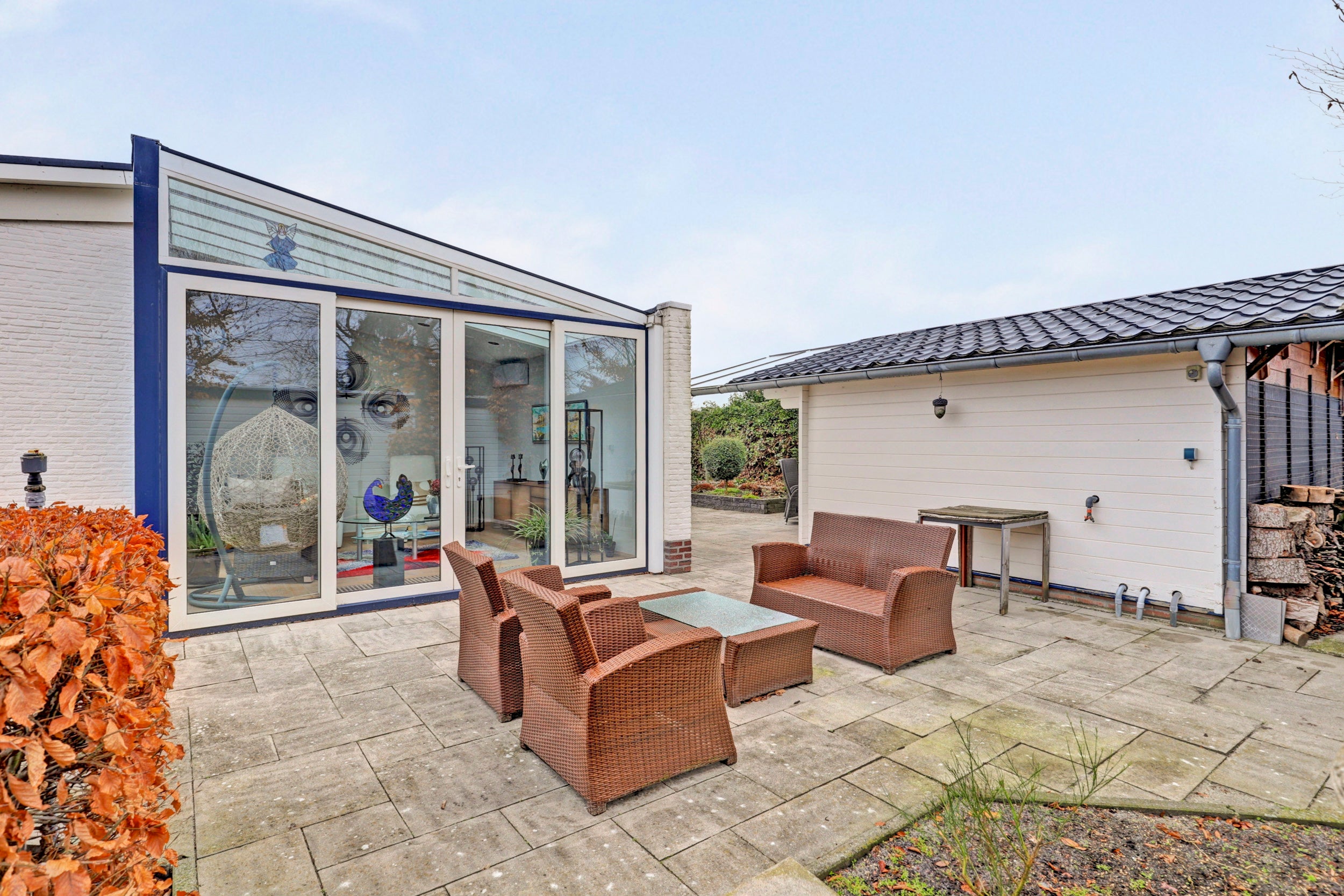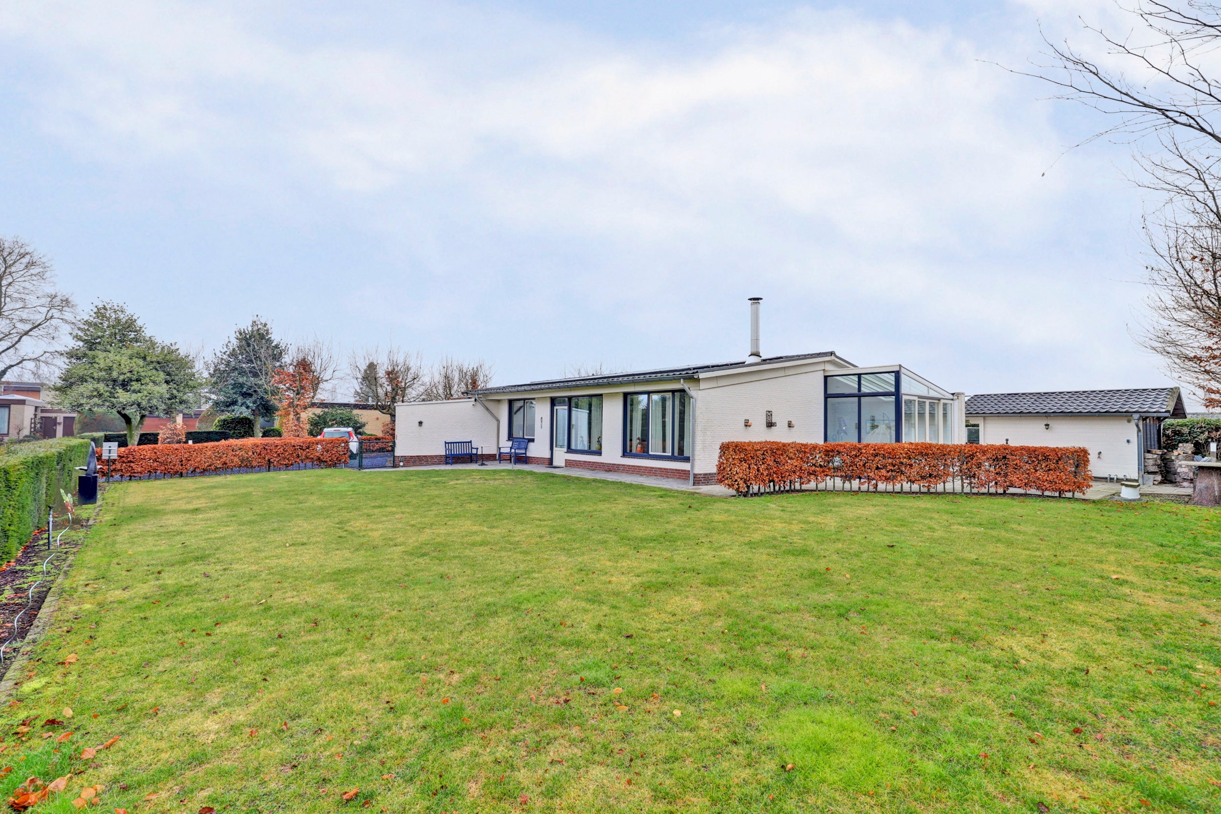 Deze ruime bungalow uit 1964 biedt een woonoppervlakte van 186 m² op een perceel van 1.187 m², met 5 kamers waaronder 3 slaapkamers. De gevels bieden een prachtig uitzicht over de groenvoorziening. De gezellige woonkamer van ongeveer 56 m² is uitgerust met een serre, die extra licht en ruimte toevoegt. De luxe badkamer heeft een inloopdouche, ligbad en vloerverwarming. Bijzonder is de wellnessruimte, die in 2022 is gerealiseerd en twee sauna's bevat. De tuin is onderhoudsarm en biedt privacy, met een oprit voor meerdere auto’s en een tuinhuis voor extra bergruimte. De bungalow is goed geïsoleerd, heeft 24 zonnepanelen, en is gunstig gelegen nabij winkelvoorzieningen en natuurgebieden.