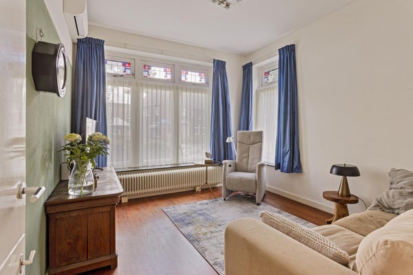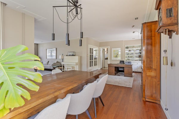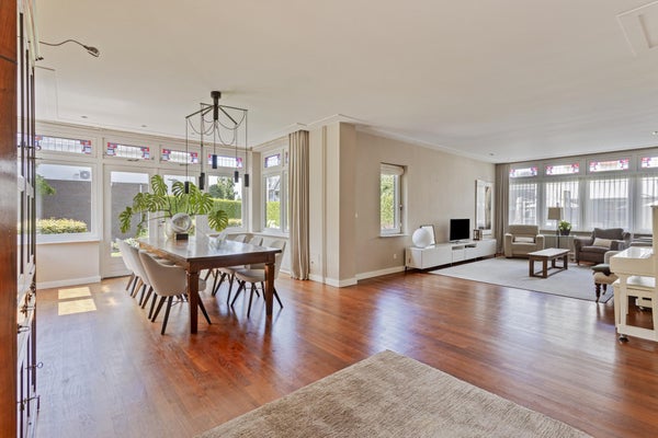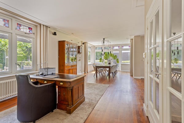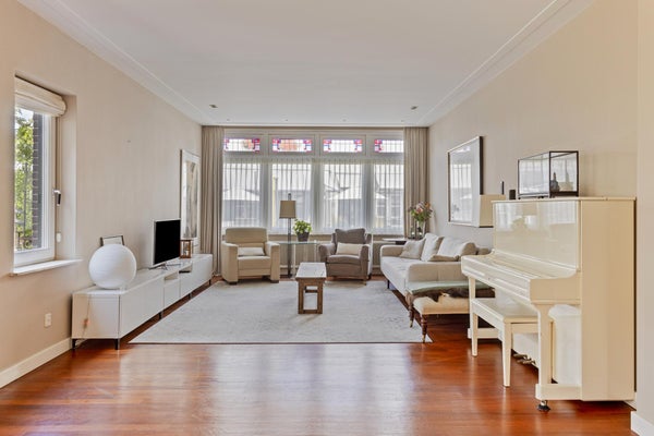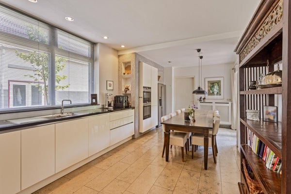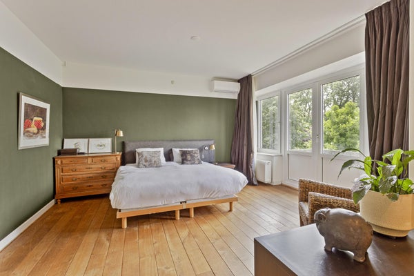 Deze karakteristieke villa, gebouwd in 1920, biedt een ruime woonoppervlakte van 289 m² op een perceel van 880 m². De villa bevat 9 kamers, waaronder 5 slaapkamers en 2 badkamers, en beschikt over een werkkamer op de begane grond, een grote leefkeuken en een royale woonkamer. De woonkamer heeft een serene sfeer met prachtig uitzicht op de mooi aangelegde tuin met zwembad. De grote tuin biedt veel privacy en rust, ondanks de centrale ligging. De eerste verdieping heeft 4 slaapkamers, waaronder een master bedroom met toegang tot een balkon. De tweede verdieping is eveneens ruim en biedt de mogelijkheid voor extra slaapkamers of een atelier. De garage kan multifunctioneel worden ingezet, en er zijn diverse duurzame voorzieningen zoals 20 zonnepanelen en isolatie.