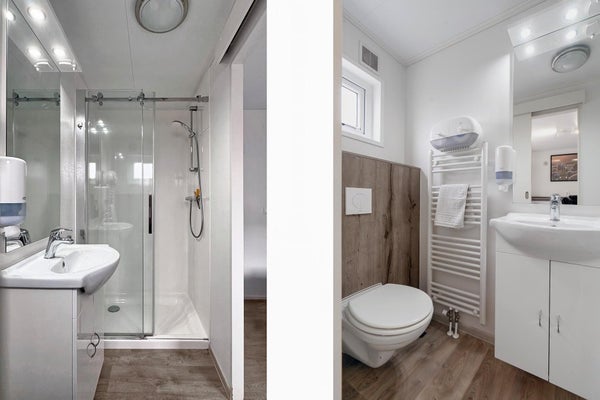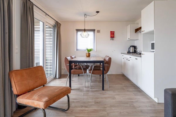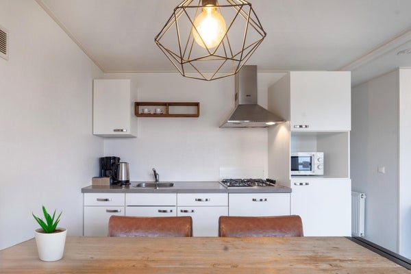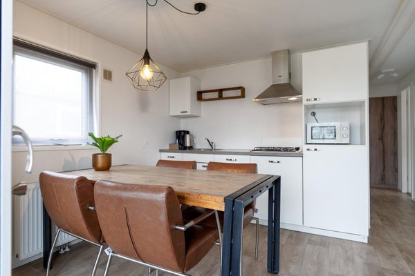 Daarnaast zijn er 2 badkamers met douche en toilet en een overdekte veranda in de tuin. Deze woning op eigen perceel van 234 m² heeft een woonoppervlakte van ca. 41 m². Permanente bewoning is niet toegestaan.
