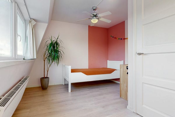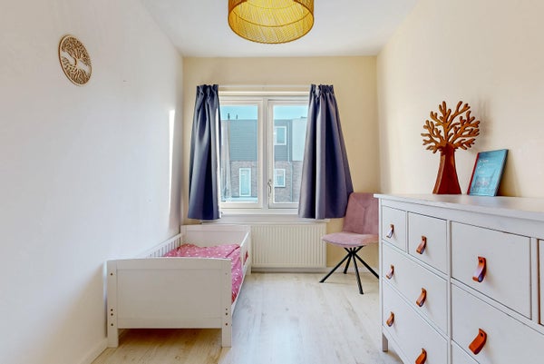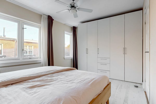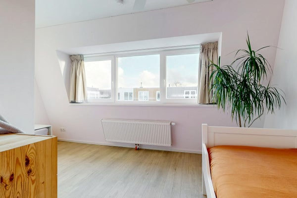 Deze heerlijke, lichte gezinswoning in de Rivierenbuurt is meteen te betrekken. Door een fraaie opbouw zijn er nu vier ruime slaapkamers. De woonkamer heeft een massief houten plankenvloer en de halfopen keuken met daklicht zorgt voor een lichte leefruimte. De achtertuin is meer dan 8,5 meter diep en heeft een stenen berging en een achterom. De centrale locatie biedt toegang tot winkels, basisscholen, sportfaciliteiten en het groene park Schoterbos. De woning bestaat uit een entree, gang, modern toilet, woonkamer met openslaande deuren, en een keuken met inbouwapparatuur. Boven zijn er twee slaapkamers en een badkamer op de eerste verdieping, en nogmaals twee ruime slaapkamers op de tweede verdieping. Met een woonoppervlakte van 108 m² en een perceel van 80 m², heb je hier alles voor een fijn gezinsleven.