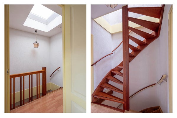 Op de begane grond vind je een lichte woonkamer, een eenvoudige keuken met toegang tot de tuin en een separaat toilet. De eerste verdieping heeft drie slaapkamers en een badkamer. De tweede verdieping biedt twee extra slaapkamers en een wasruimte.