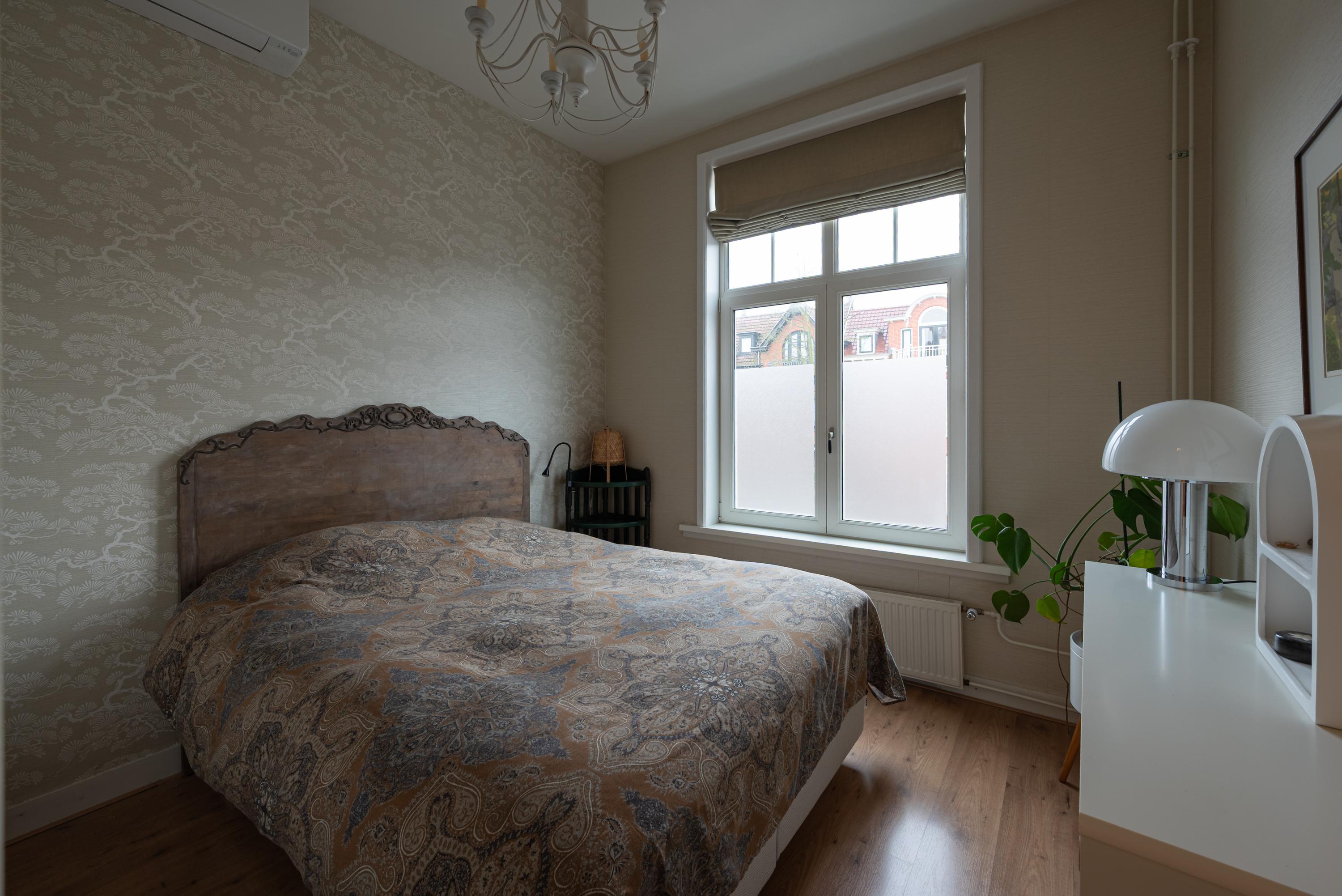 In het hart van het Kleverpark, op loopafstand van het station en de binnenstad, ligt deze goed onderhouden benedenwoning van 125 m² met 3 ruime slaapkamers. Het huis beschikt over authentieke kenmerken zoals een kamer-en-suite, schouwen en paneeldeuren. De woning is gebouwd in 1914 en heeft een energielabel B. De indeling omvat een entree met hal, brede woonkamer, serre met toegang tot de achtertuin, een slaapkamer en een badkamer met ligbad en wastafel. Op de eerste verdieping bevindt zich een slaapkamer met vaste kast, en op de tweede verdieping nog een slaapkamer met toegang tot de vliering. De achtertuin van 60 m² en de ligging in een gewilde wijk met voorzieningen maken deze woning bijzonder aantrekkelijk.
