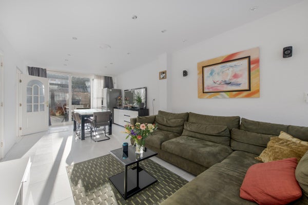 - Ruime woonkamer met kunststof schuifpui naar de tuin