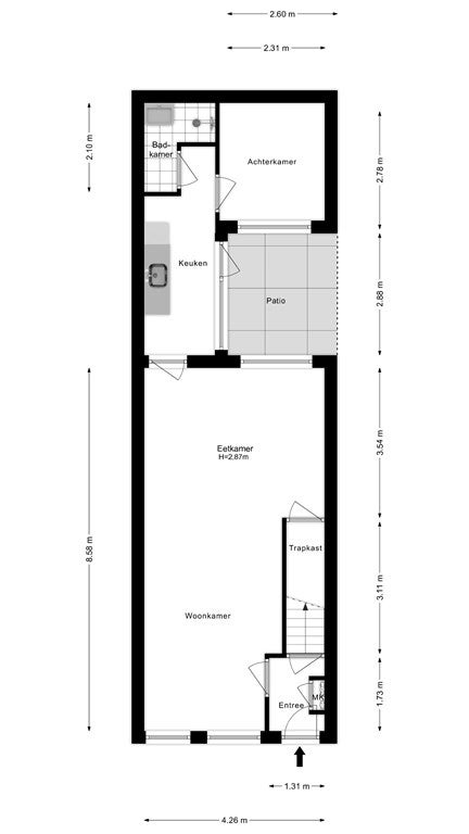 Aanwezig (7 m², gelegen op het zuidwesten)